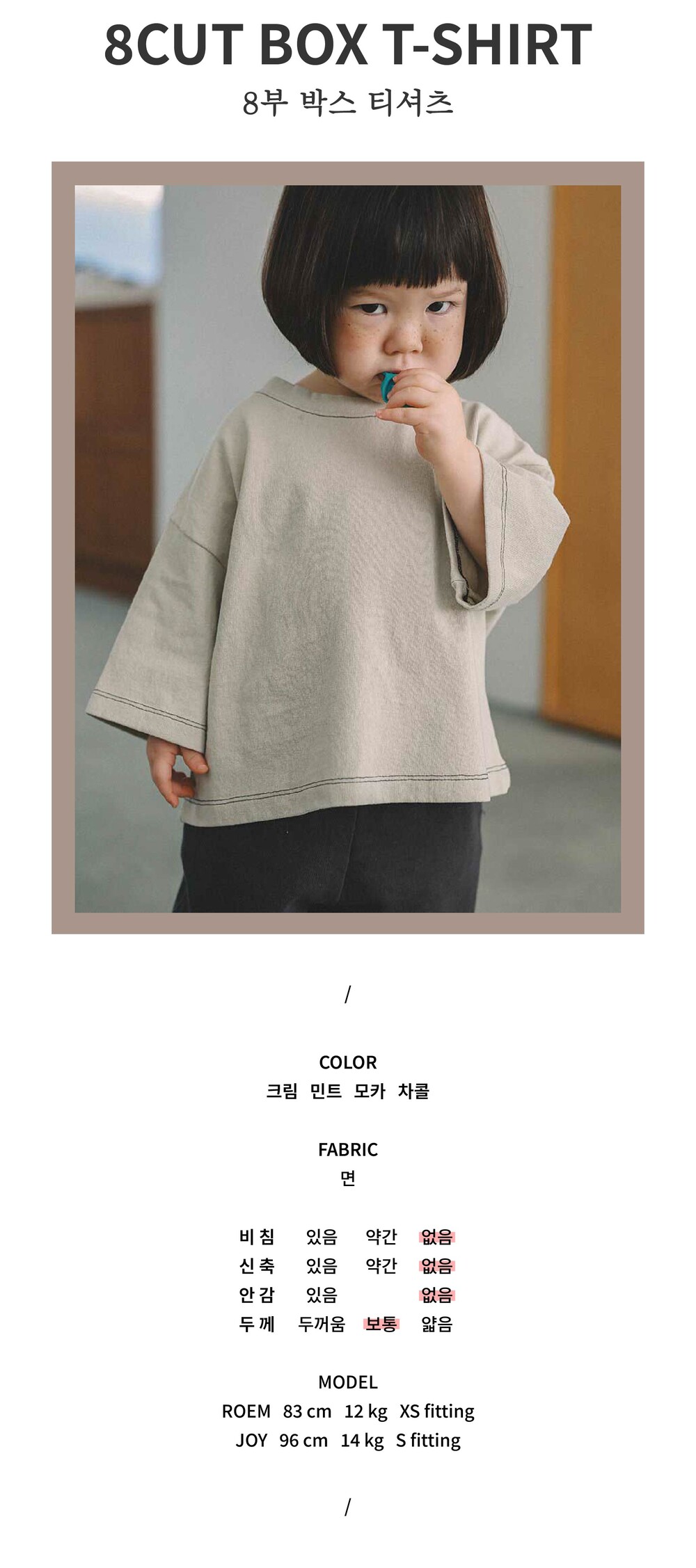 [XXS-XL] 8부 박스 티셔츠