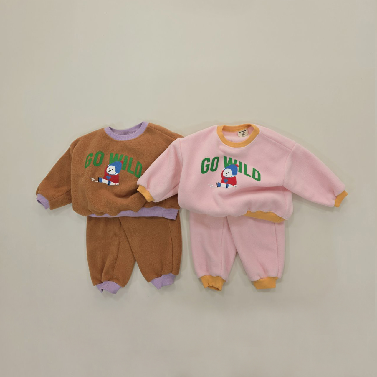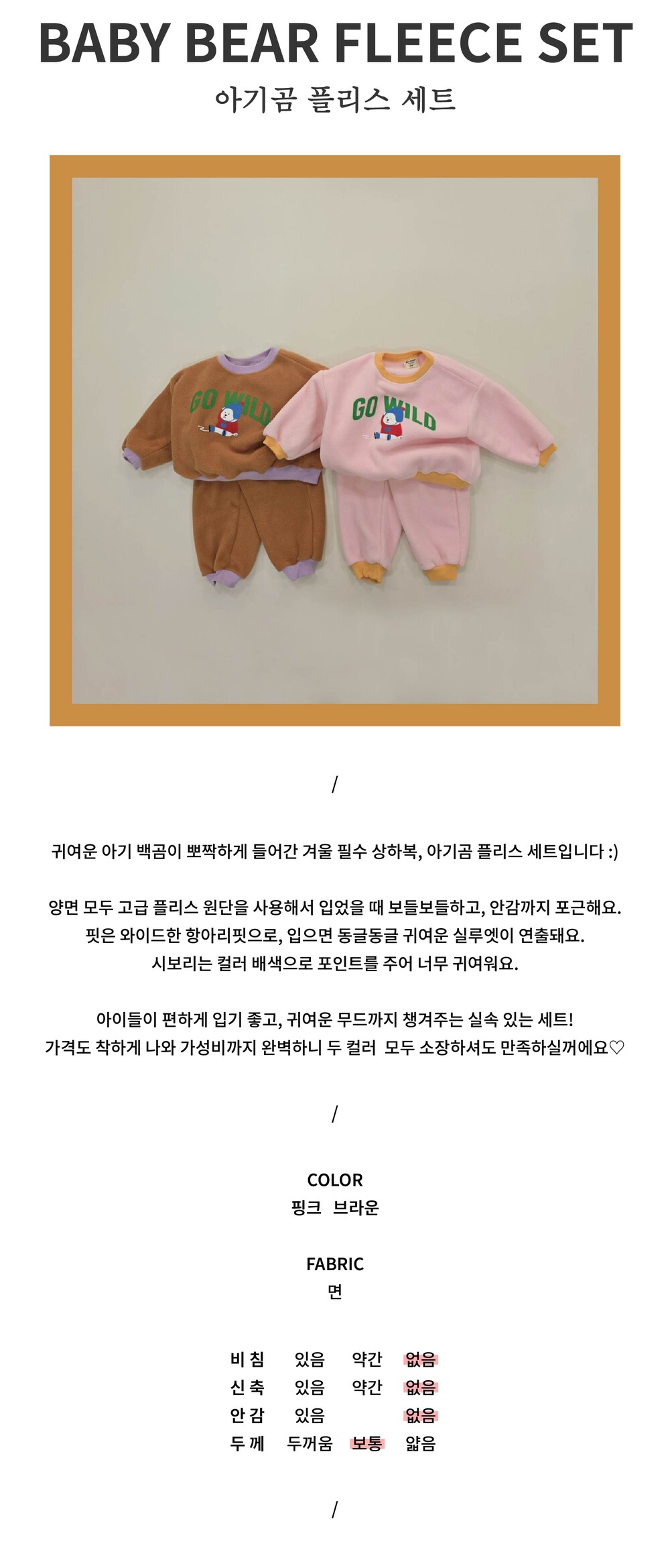 귀여운 아기 백곰이 뽀짝하게 들어간 겨울 필수 상하복, 아기곰 플리스 세트입니다 :)