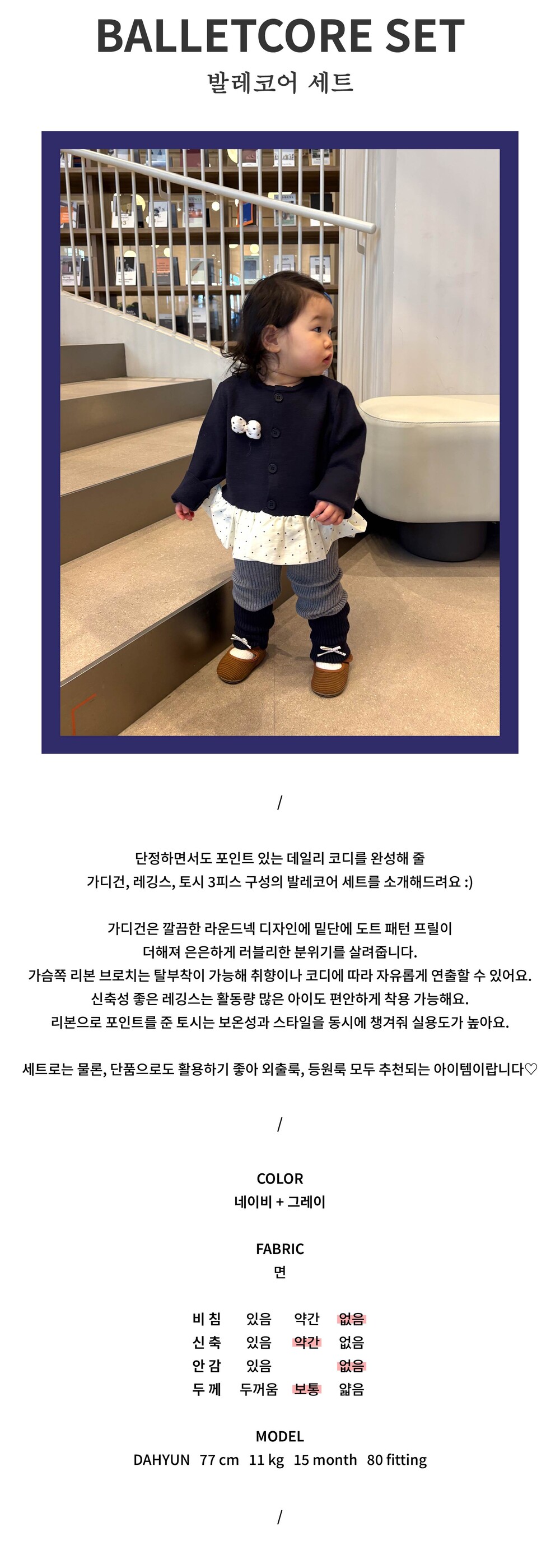 가디건, 레깅스, 토시 3피스 구성의 발레코어 세트를 소개해드려요 :)