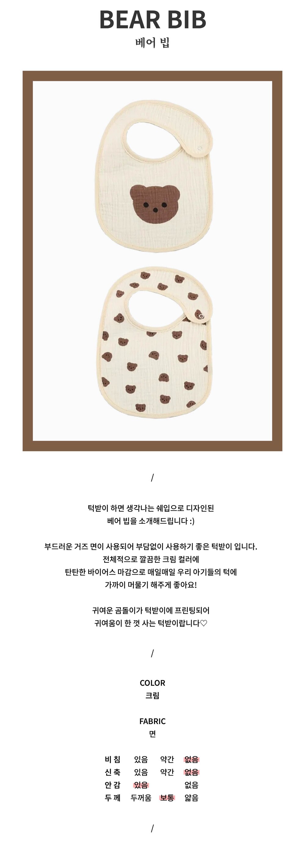 귀여운 곰돌이가 턱받이에 프린팅되어