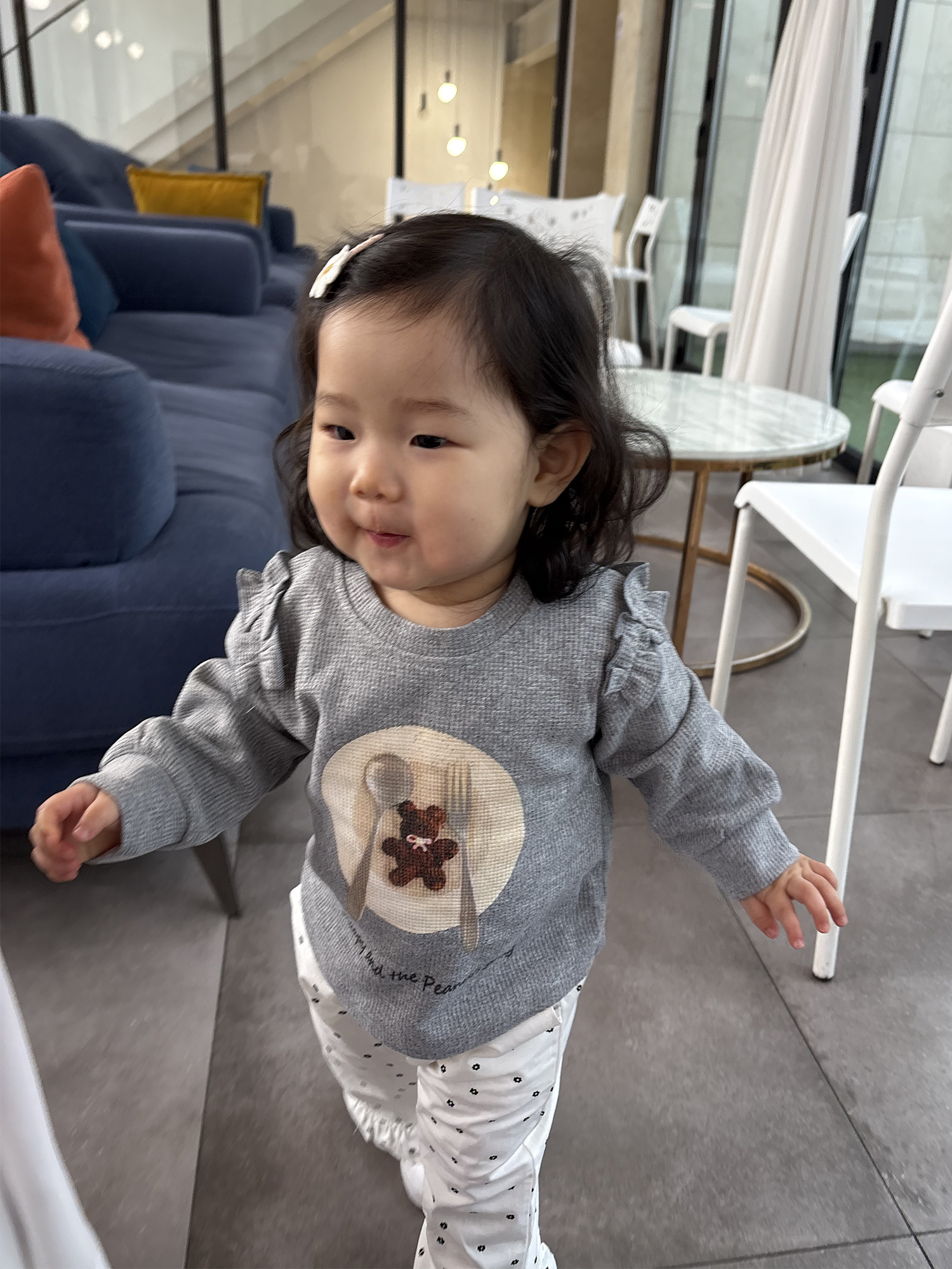 사랑스럽고 포근한 분위기를 연출해주는 베어 프릴 티셔츠를 소개해드려요 :)