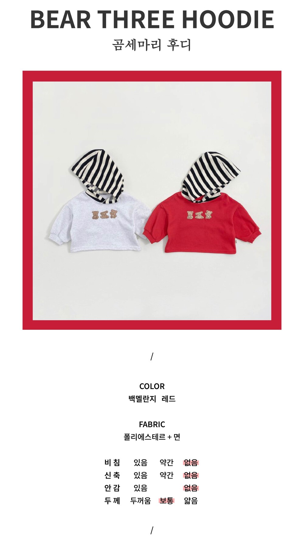 [XS-XL] 곰세마리 후디