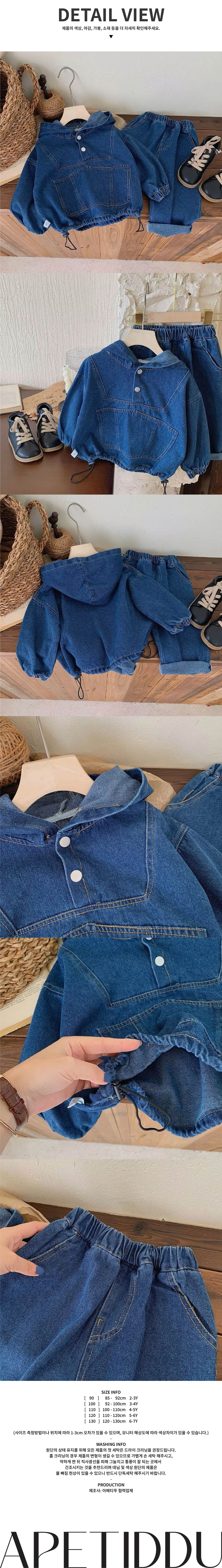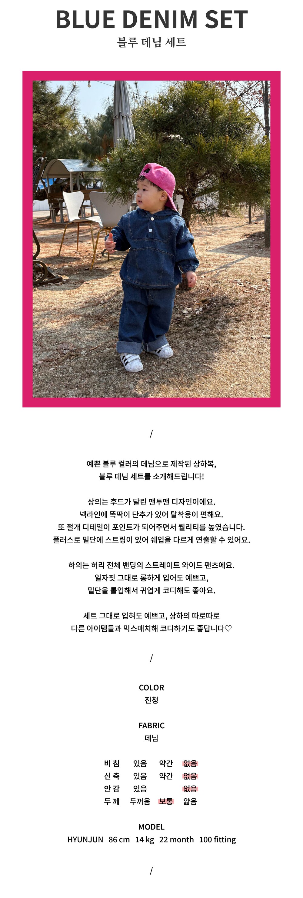 예쁜 블루 컬러의 데님으로 제작된 상하복,