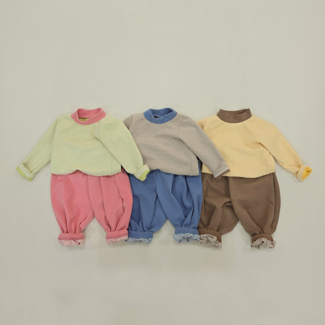 동글동글 귀여운 항아리핏 팬츠와 스트라이프 반목 티셔츠가