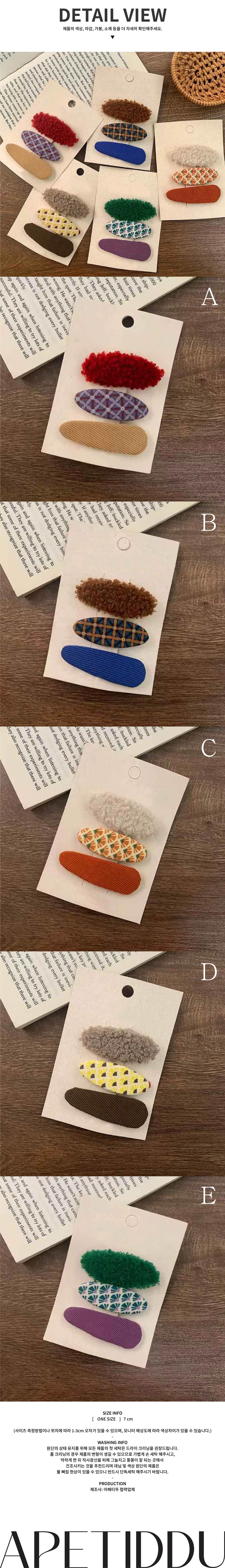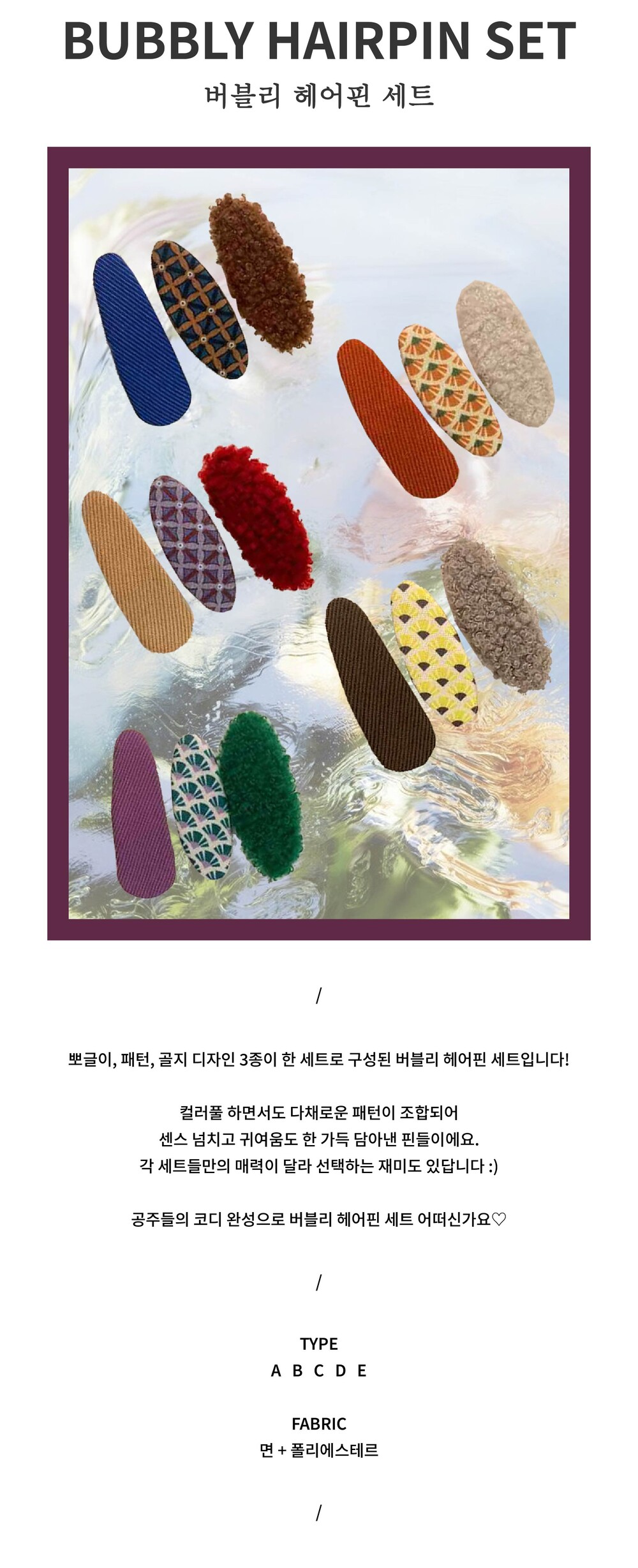 뽀글이, 패턴, 골지 디자인 3종이 한 세트로 구성된 버블리 헤어핀 세트입니다!