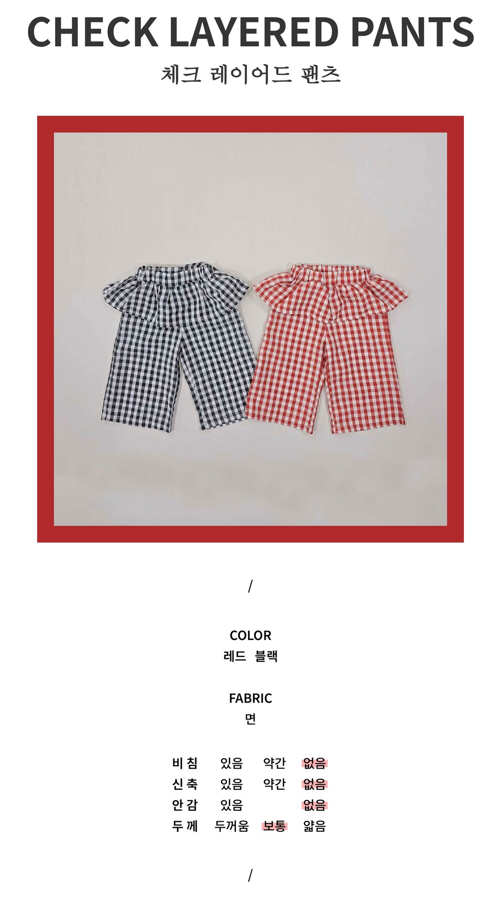 [XS-XL] 체크 레이어드 팬츠
