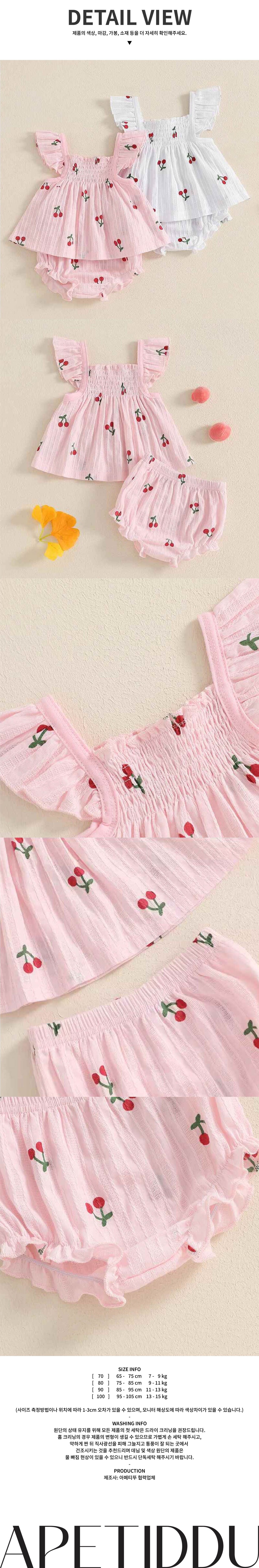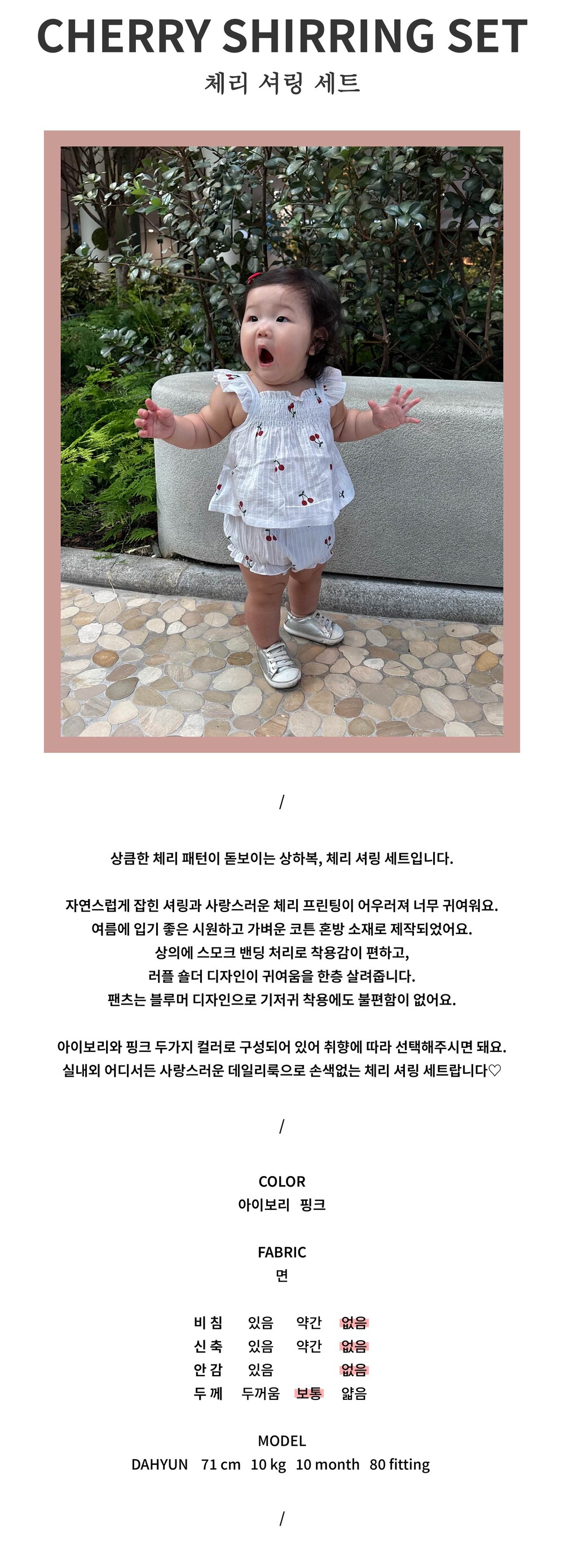 상큼한 체리 패턴이 돋보이는 상하복, 체리 셔링 세트입니다.