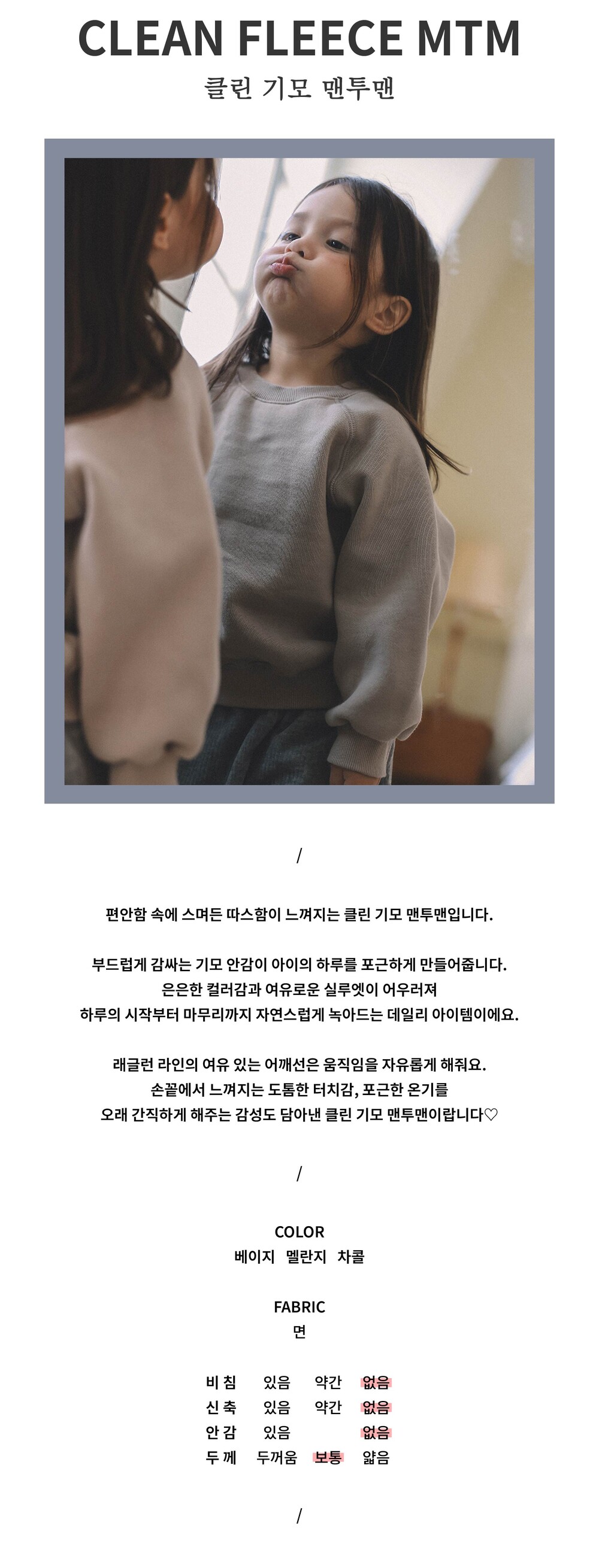 편안함 속에 스며든 따스함이 느껴지는 클린 기모 맨투맨입니다.
