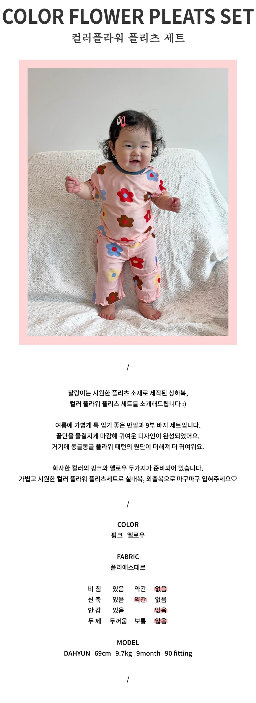 가볍고 시원한 컬러 플라워 플리츠세트로 실내복, 외출복으로 마구마구 입혀주세요♡
