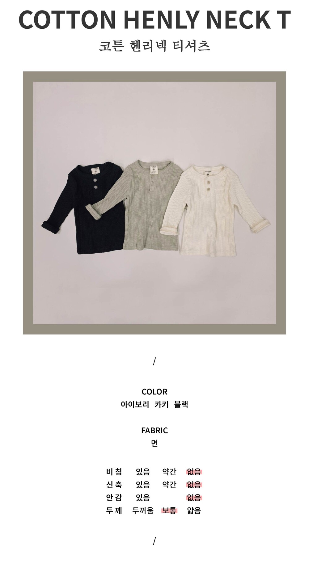 [XS-JM] 코튼 헨리넥 티셔츠