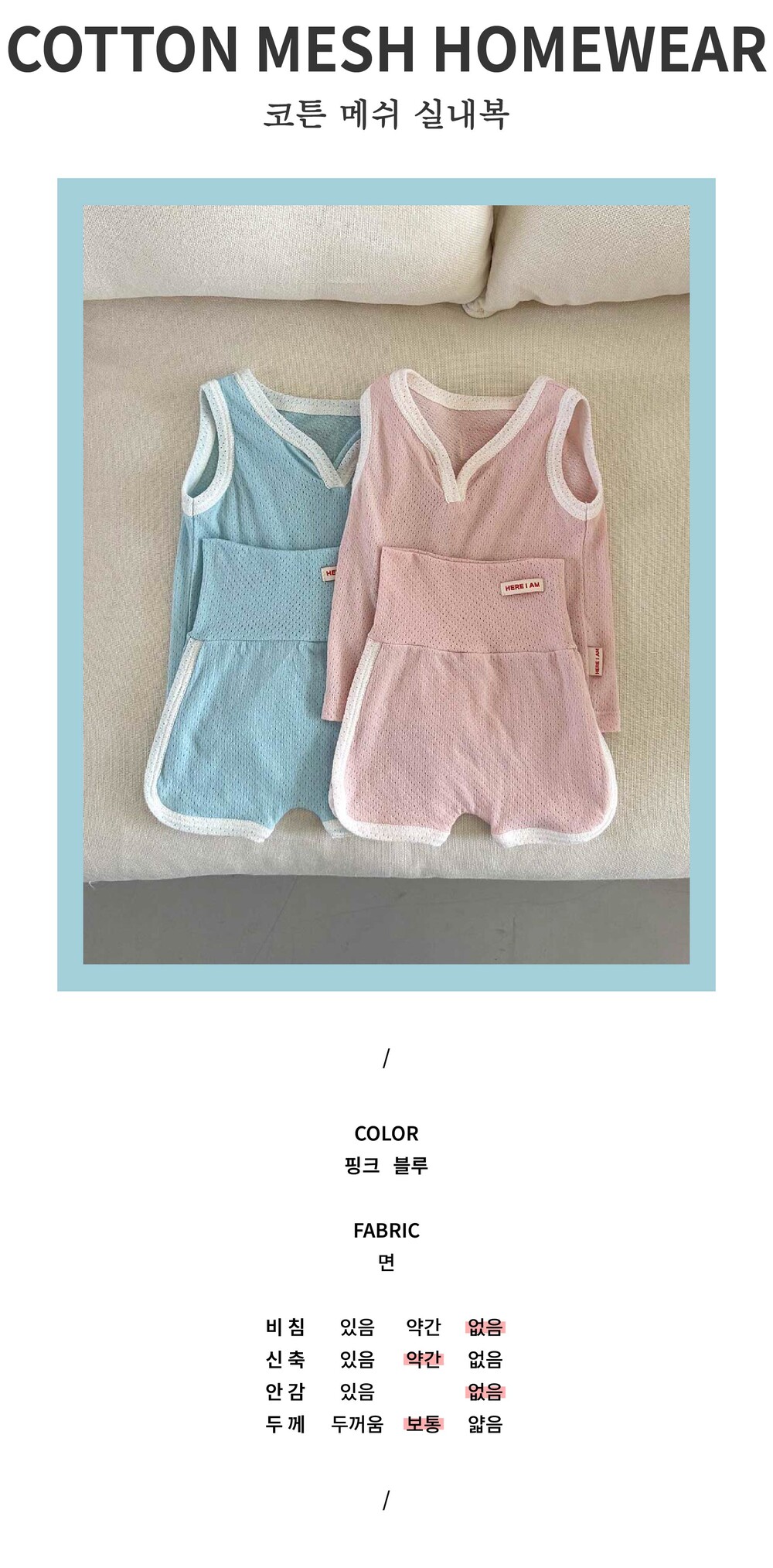 [12m-120] 코튼 메쉬 실내복