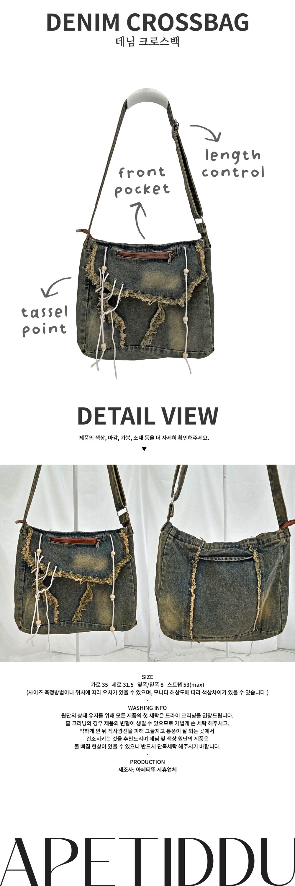 빈티지한 색감이 매력적인 데님 크로스백입니다.