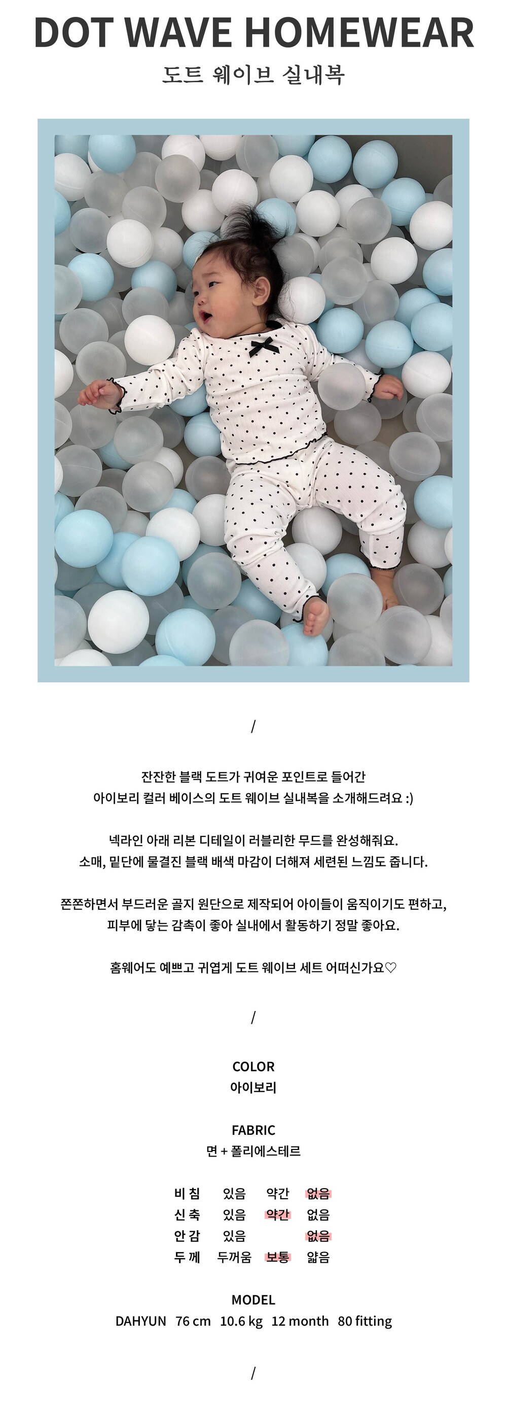 아이보리 컬러 베이스의 도트 웨이브 실내복을 소개해드려요 :)