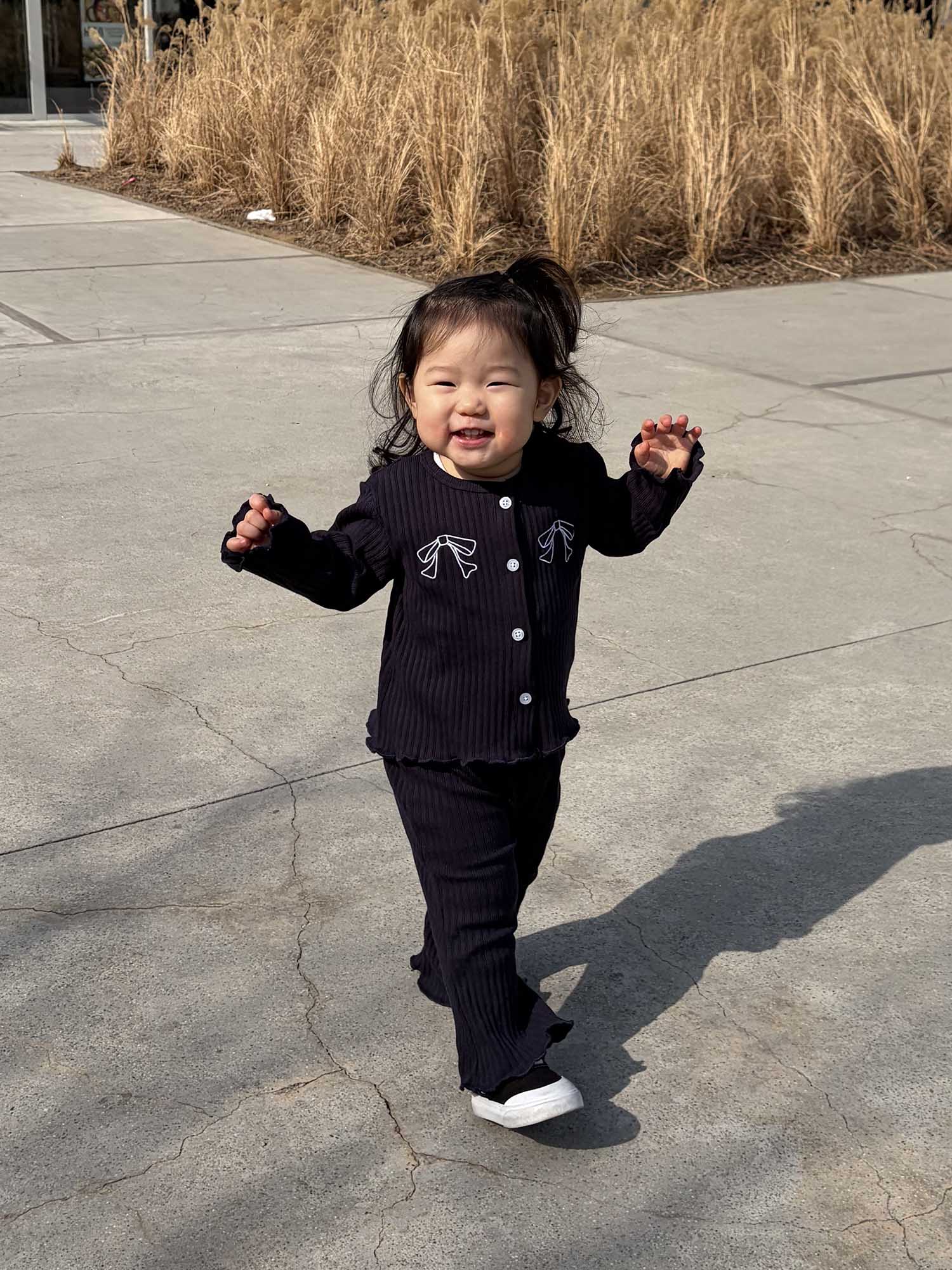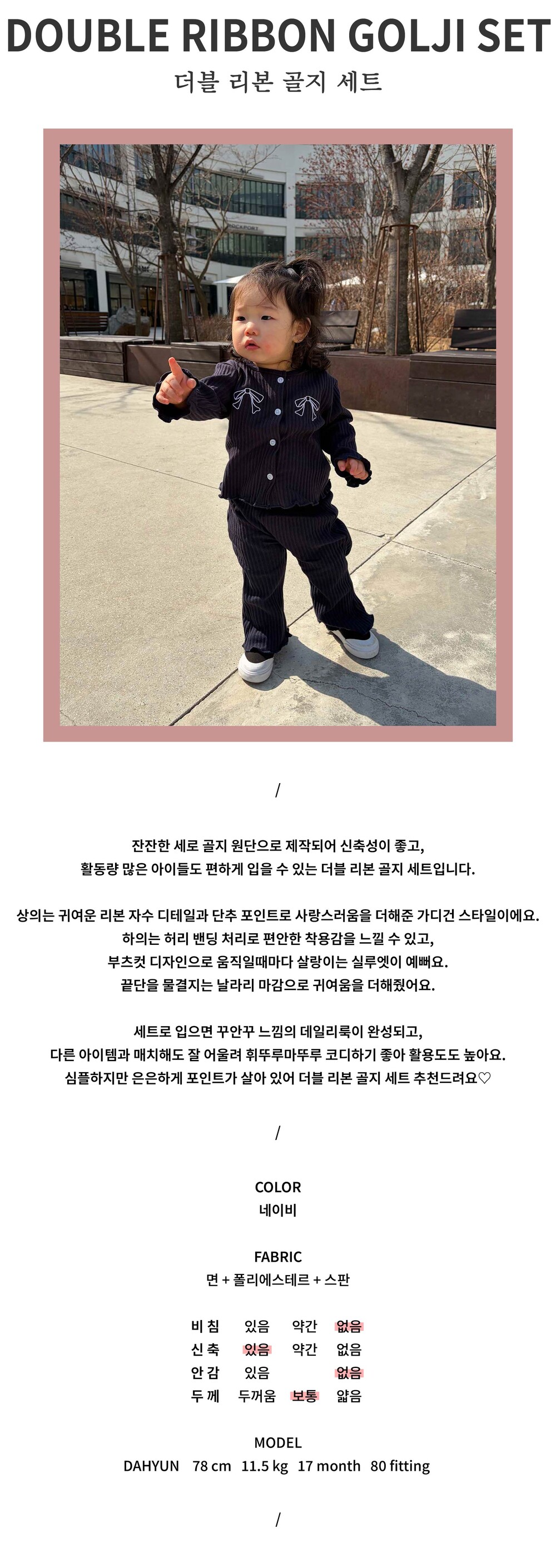 활동량 많은 아이들도 편하게 입을 수 있는 더블 리본 골지 세트입니다.