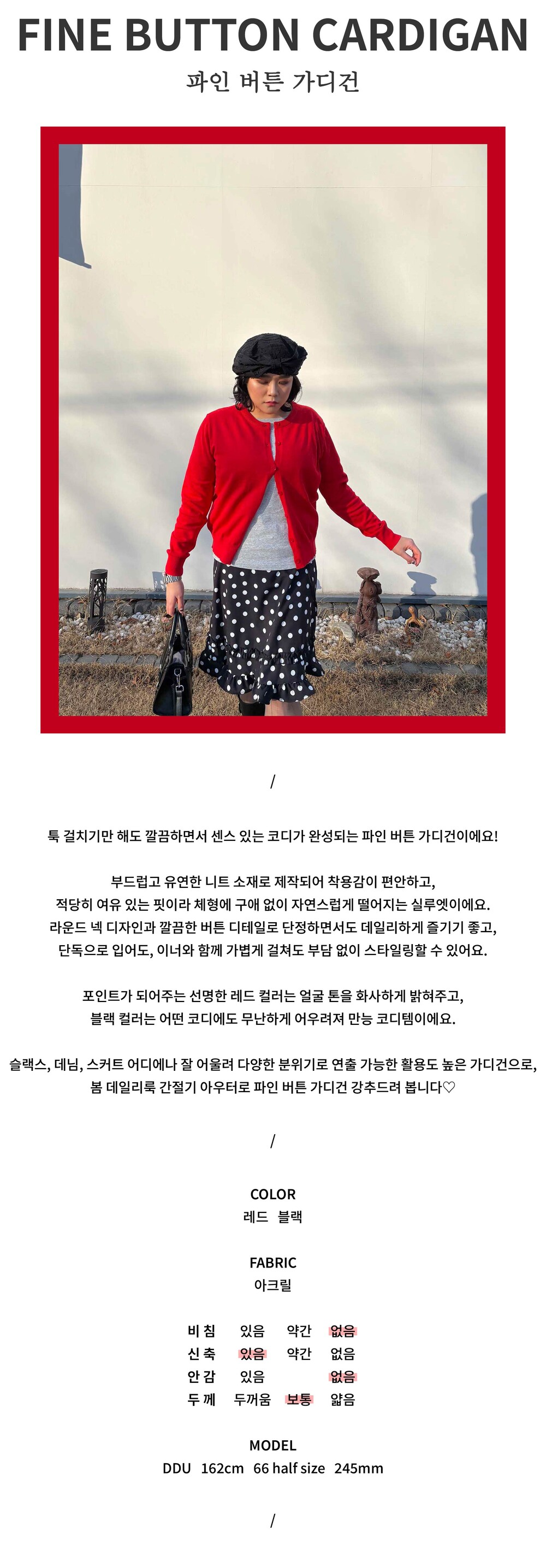 툭 걸치기만 해도 깔끔하면서 센스 있는 코디가 완성되는 파인 버튼 가디건이에요!