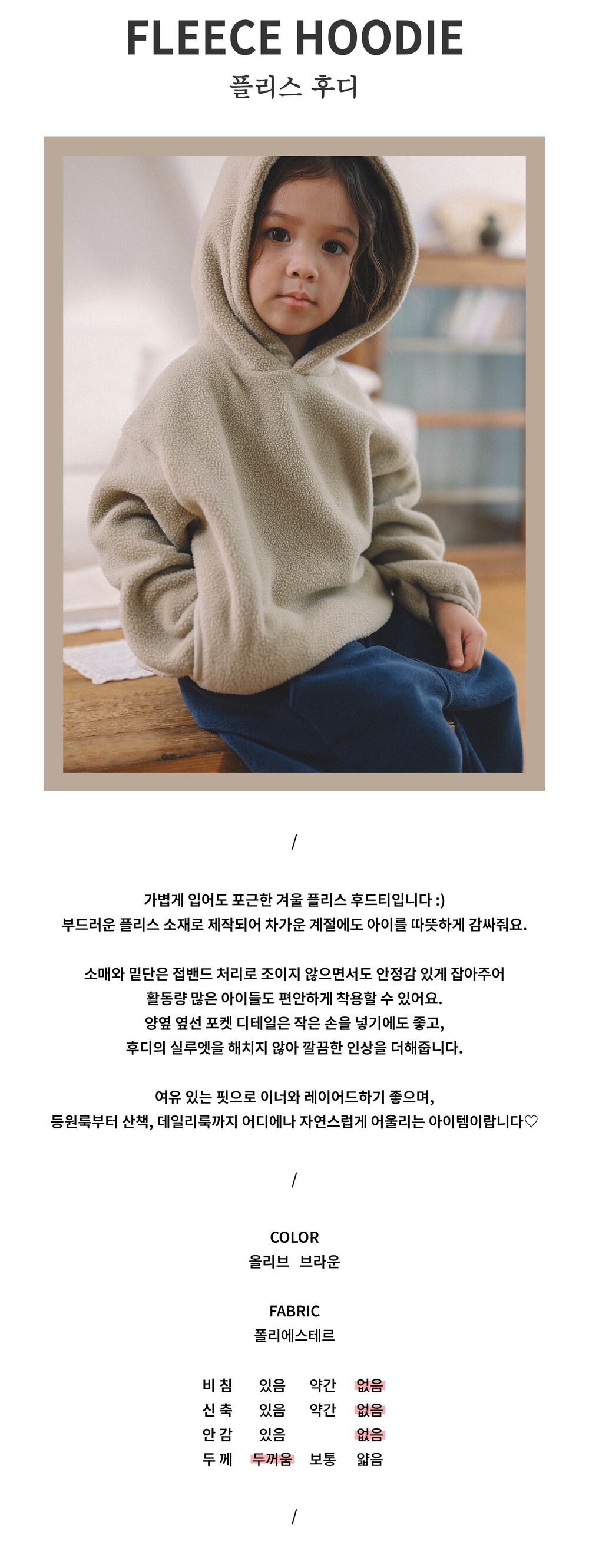 부드러운 플리스 소재로 제작되어 차가운 계절에도 아이를 따뜻하게 감싸줘요.