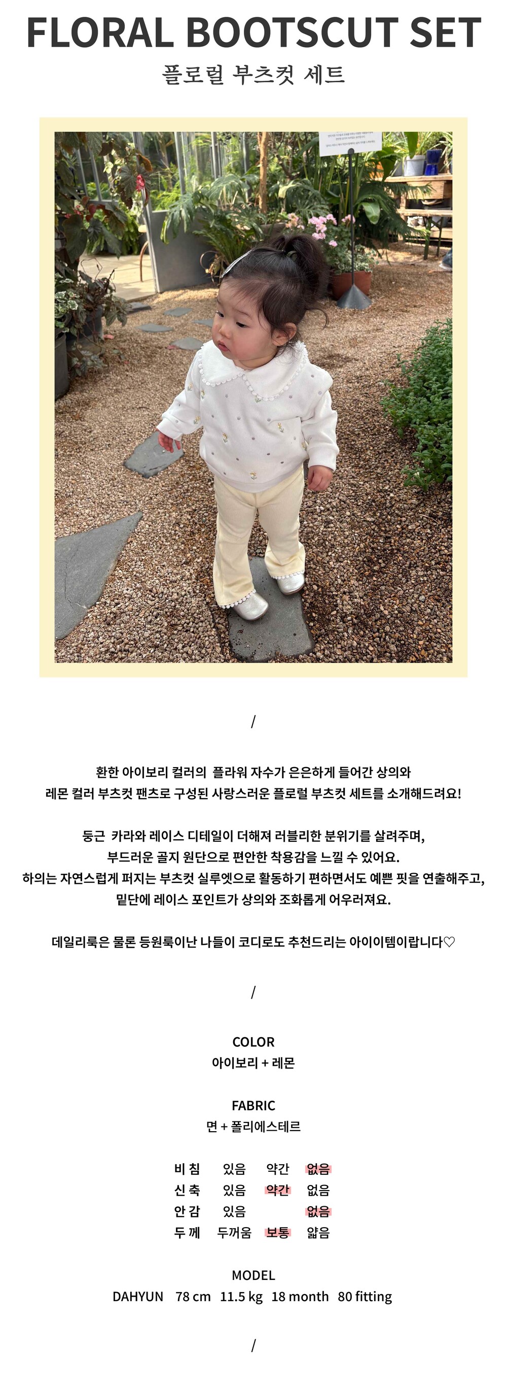 레몬 컬러 부츠컷 팬츠로 구성된 사랑스러운 플로럴 부츠컷 세트를 소개해드려요!