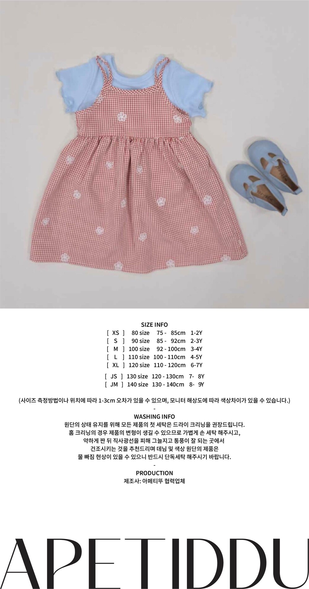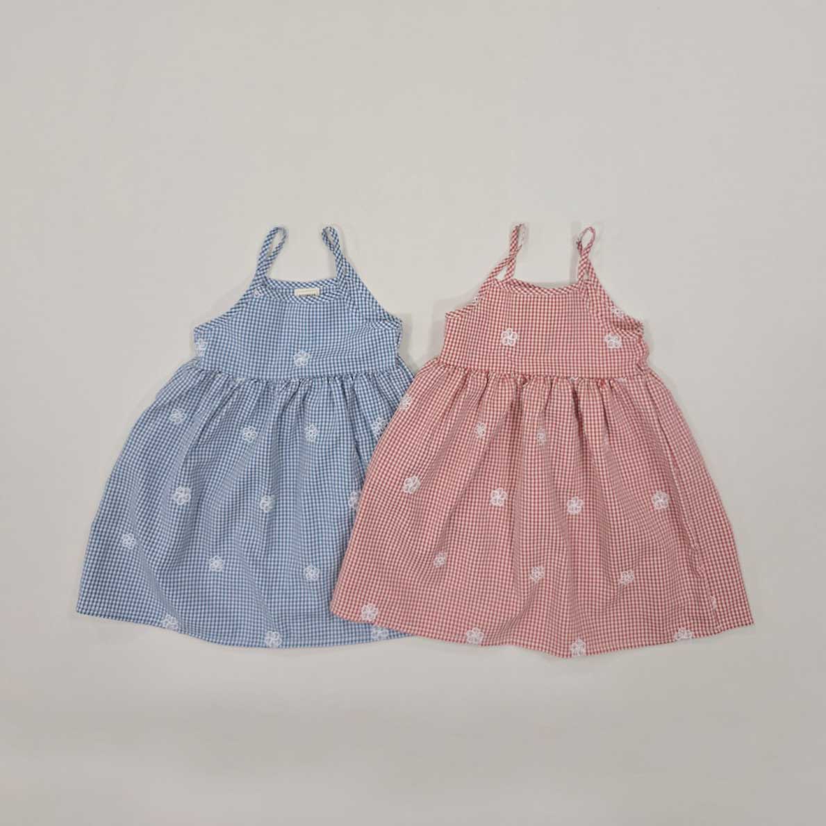 [XS-JM] 플라워 체크 끈원피스