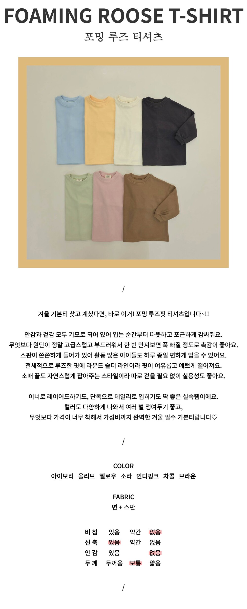 겨울 기본티 찾고 계셨다면, 바로 이거! 포밍 루즈핏 티셔츠입니다~!!