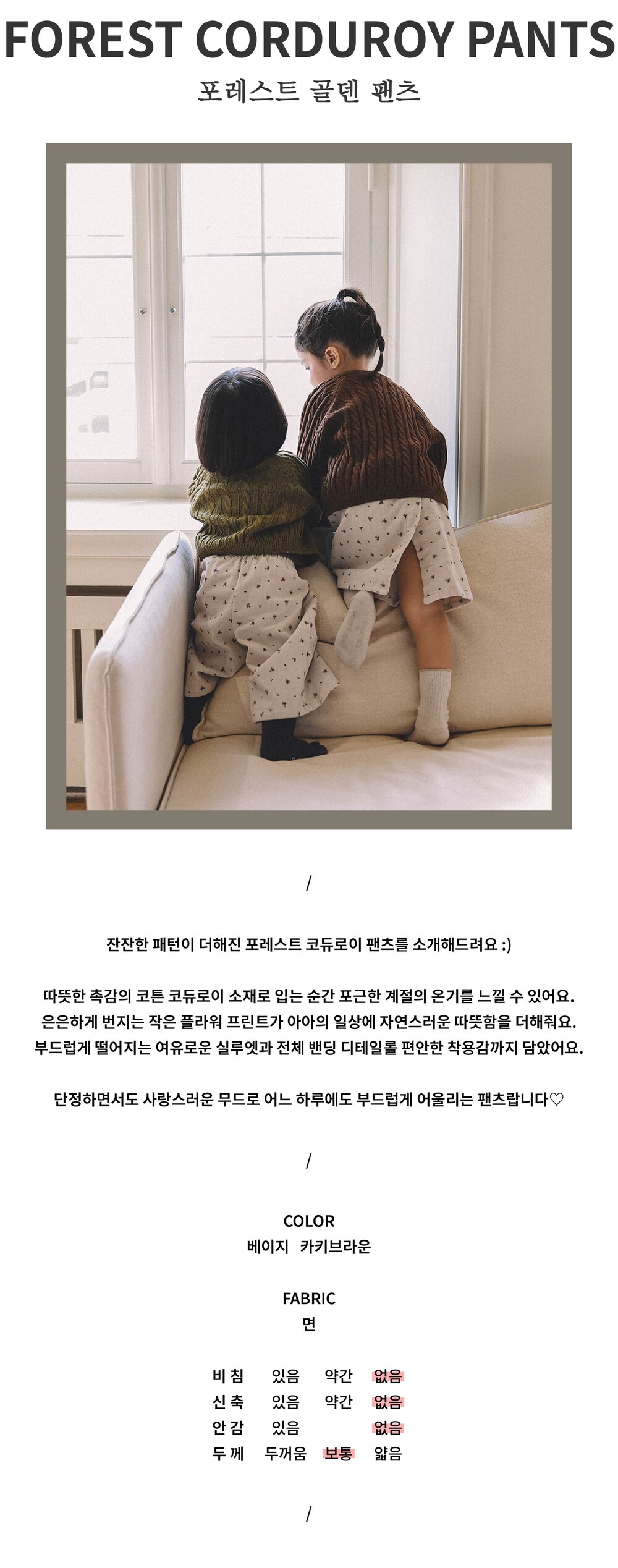 잔잔한 패턴이 더해진 포레스트 코듀로이 팬츠를 소개해드려요 :)