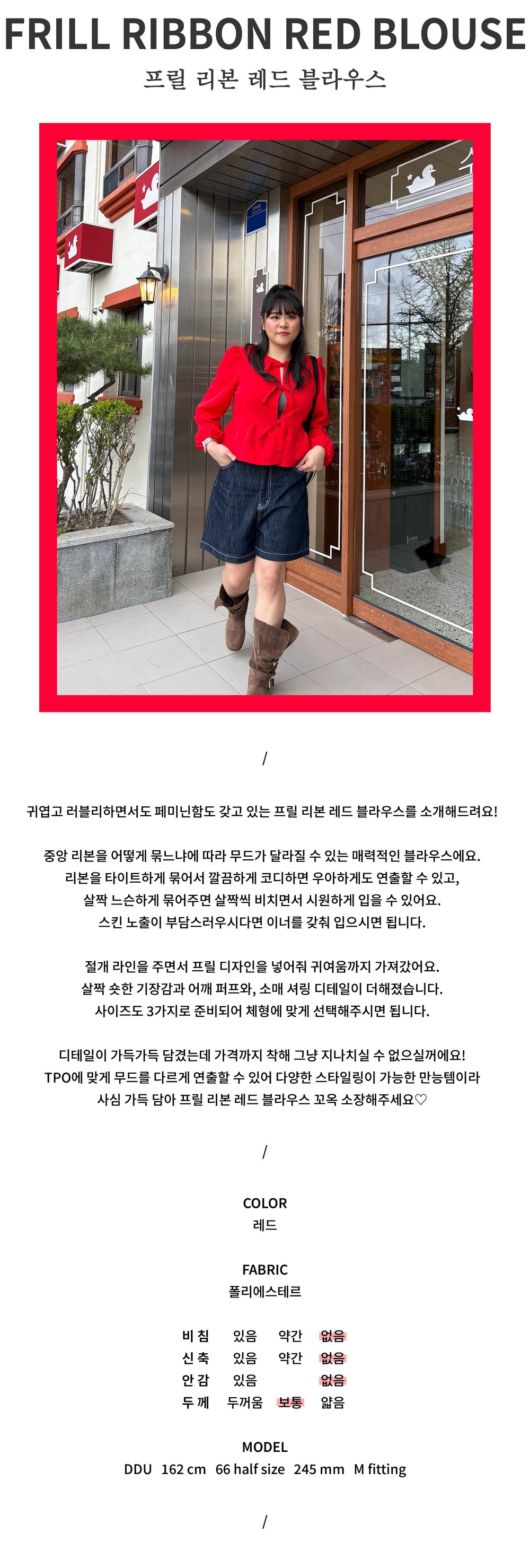 사심 가득 담아 프릴 리본 레드 블라우스 꼬옥 소장해주세요♡