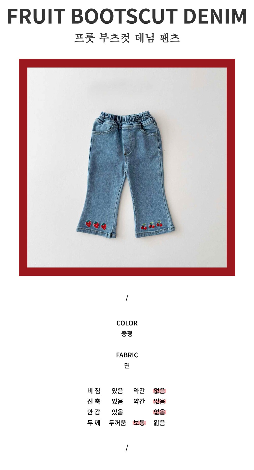 [XS-JL] 프룻 부츠컷 데님팬츠