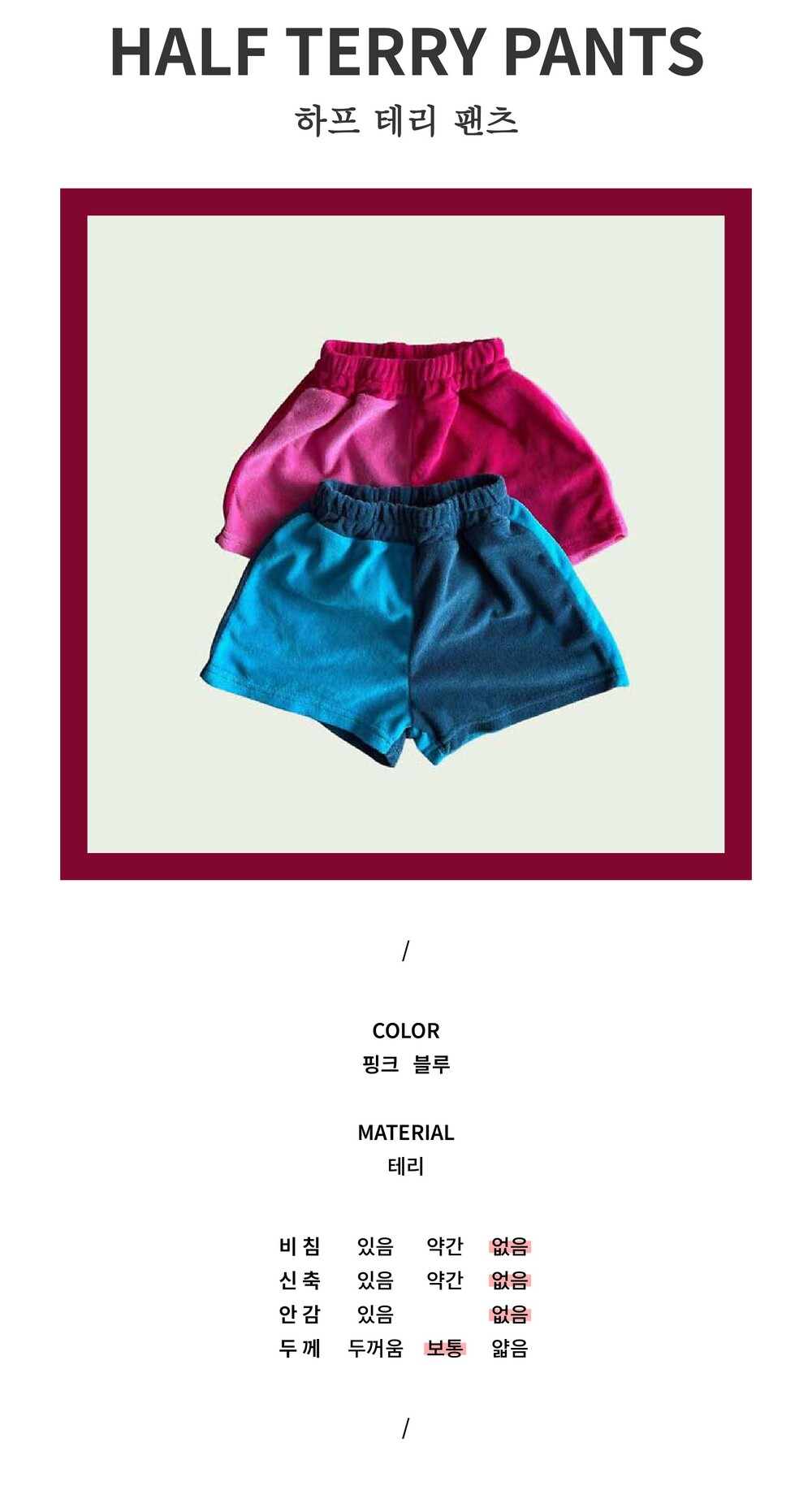 [XS-XL] 하프 테리 팬츠