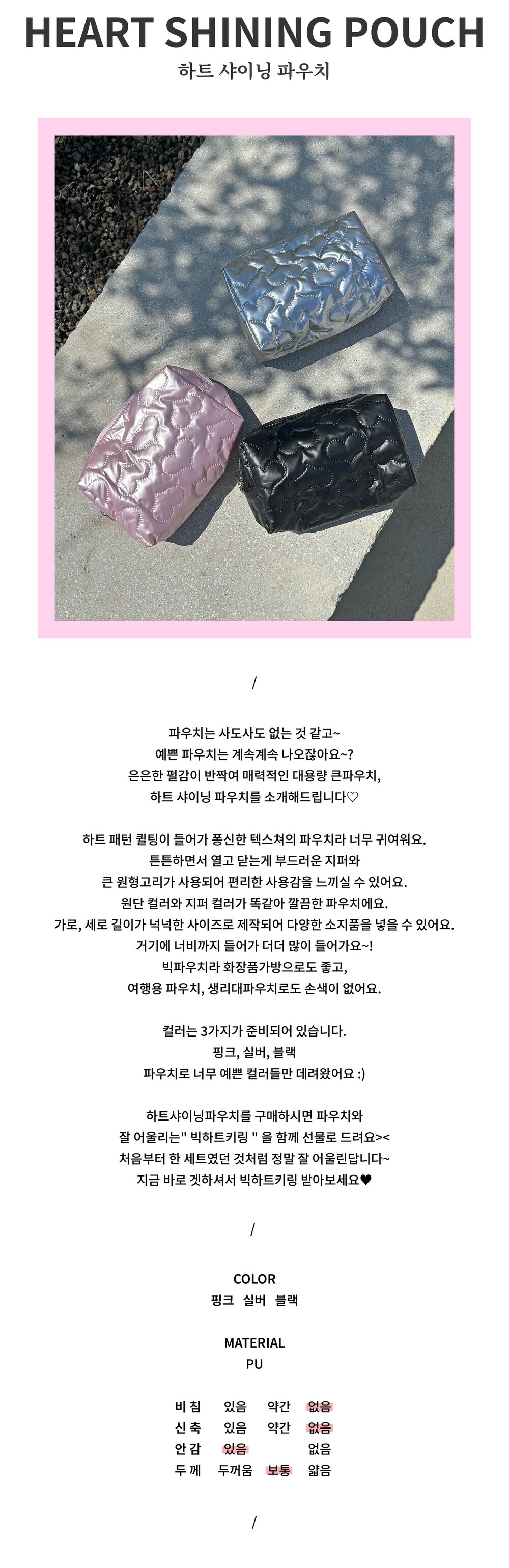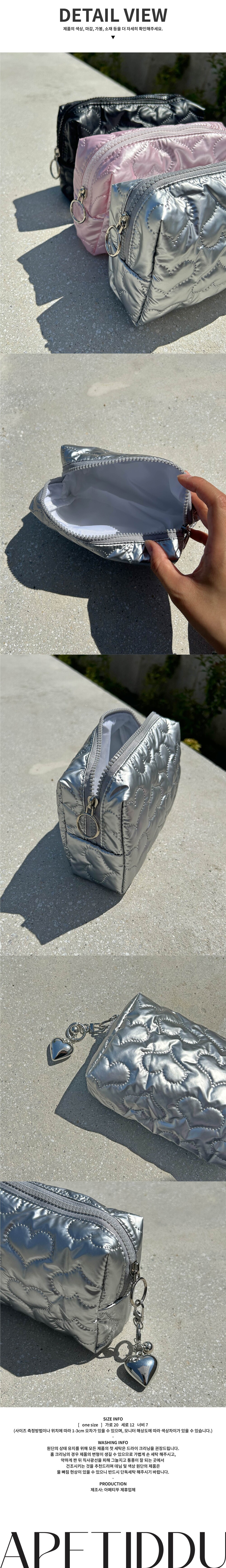하트 패턴 퀼팅이 들어가 퐁신한 텍스쳐의 파우치라 너무 귀여워요.