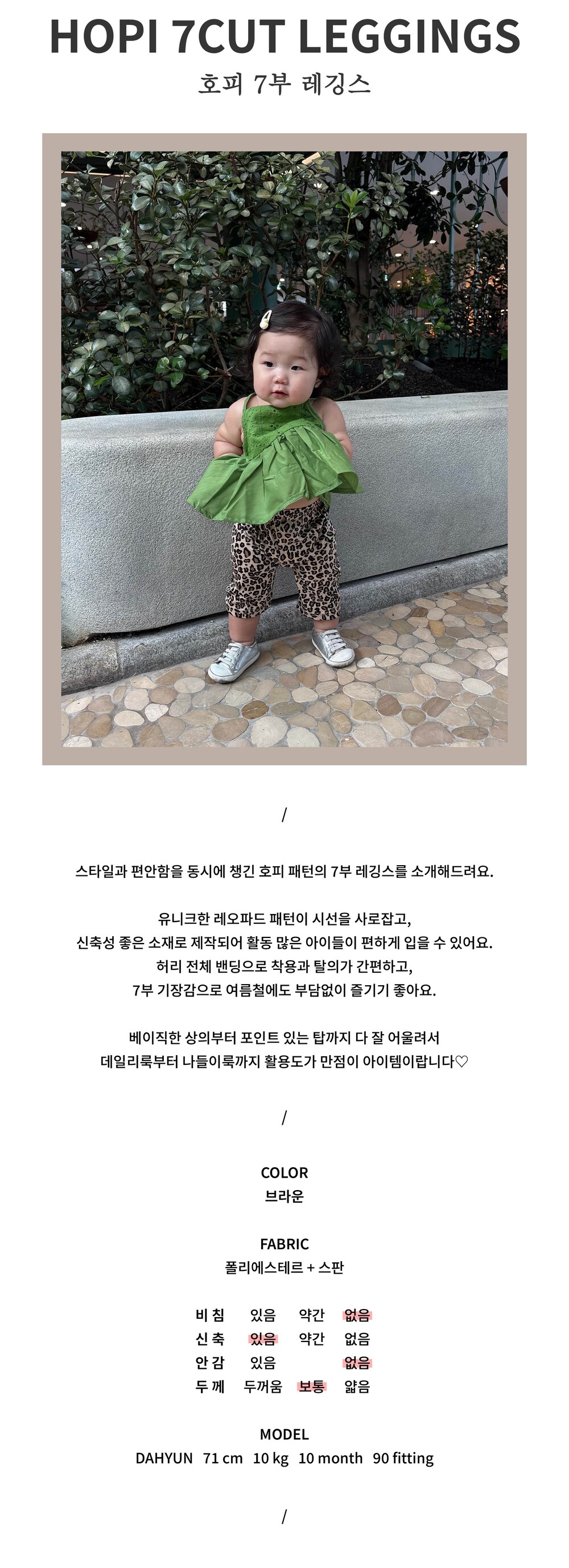 스타일과 편안함을 동시에 챙긴 호피 패턴의 7부 레깅스를 소개해드려요.