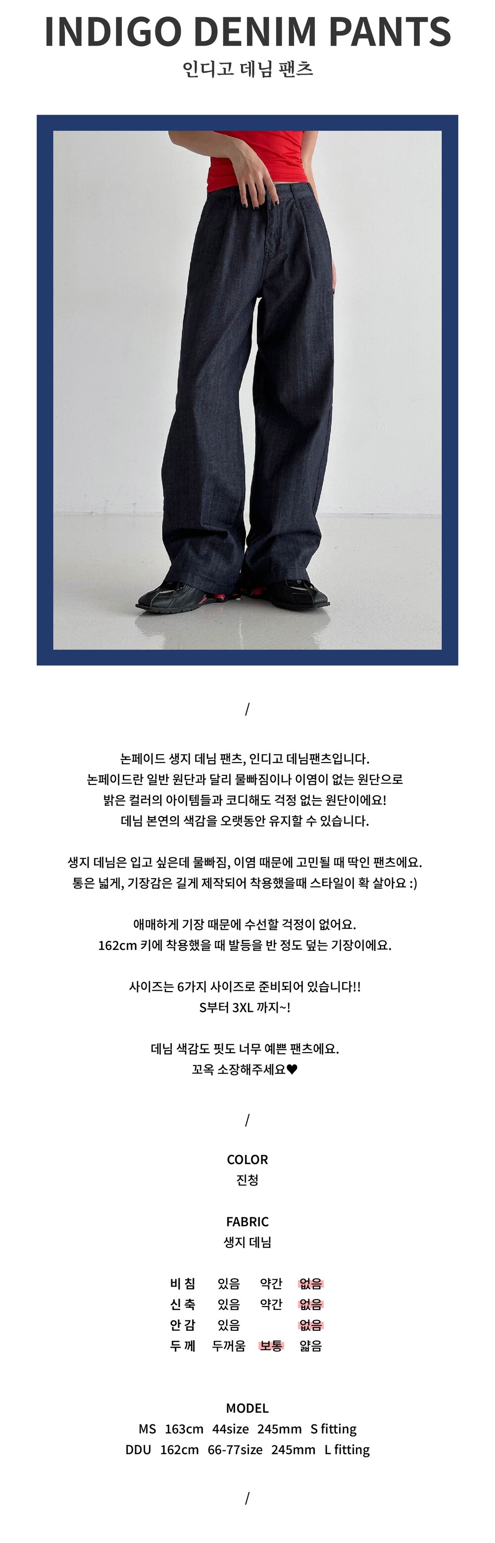 논페이드 생지 데님 팬츠, 인디고 데님팬츠입니다.