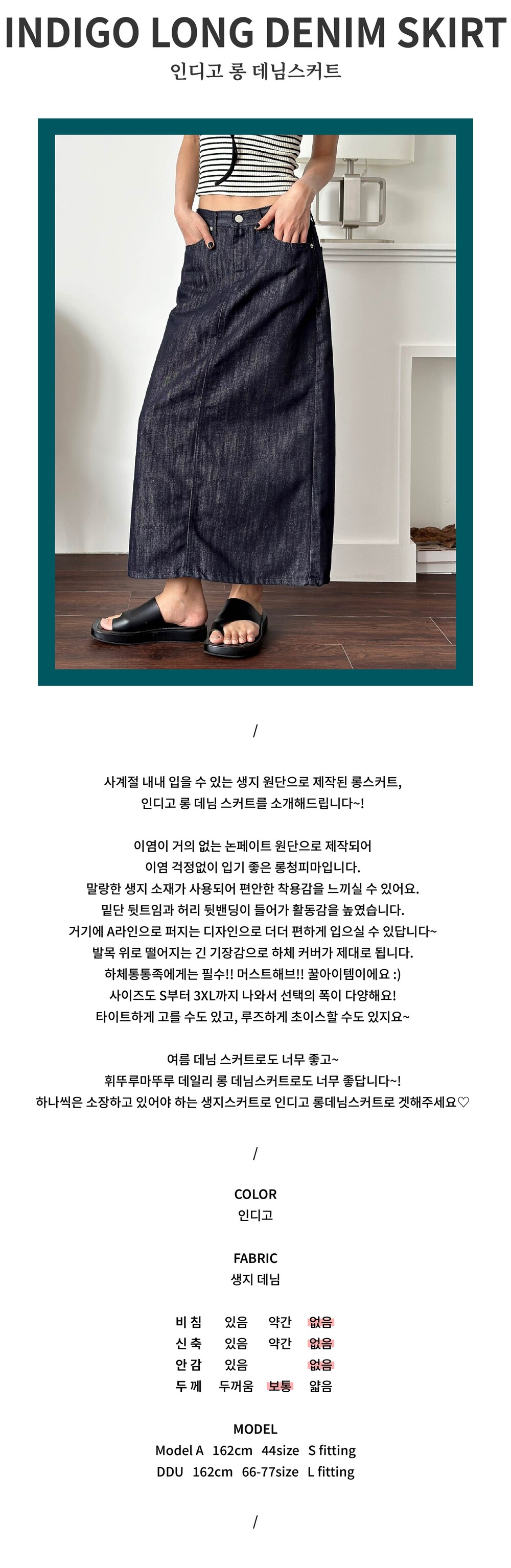 하나씩은 소장하고 있어야 하는 생지스커트로 인디고 롱데님스커트로 겟해주세요♡