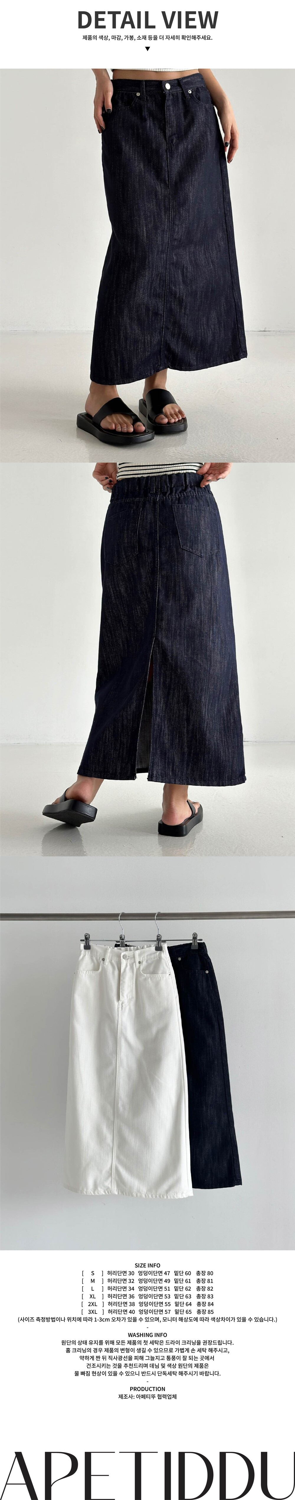 사계절 내내 입을 수 있는 생지 원단으로 제작된 롱스커트,