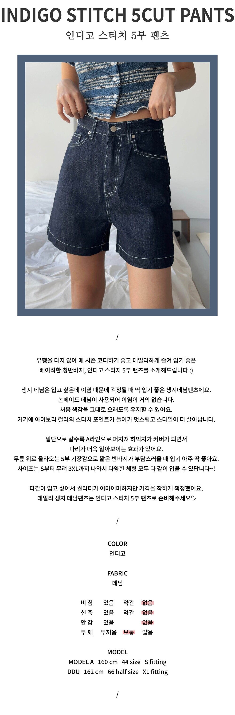 데일리 생지 데님팬츠는 인디고 스티치 5부 팬츠로 준비해주세요♡