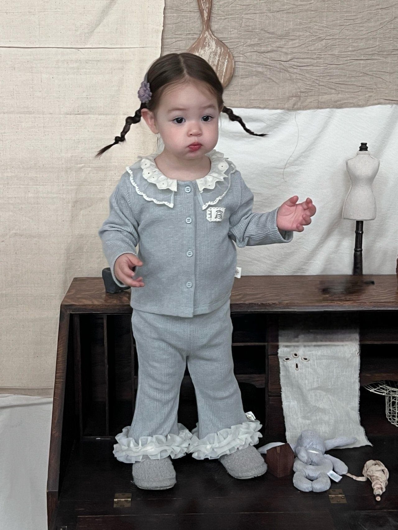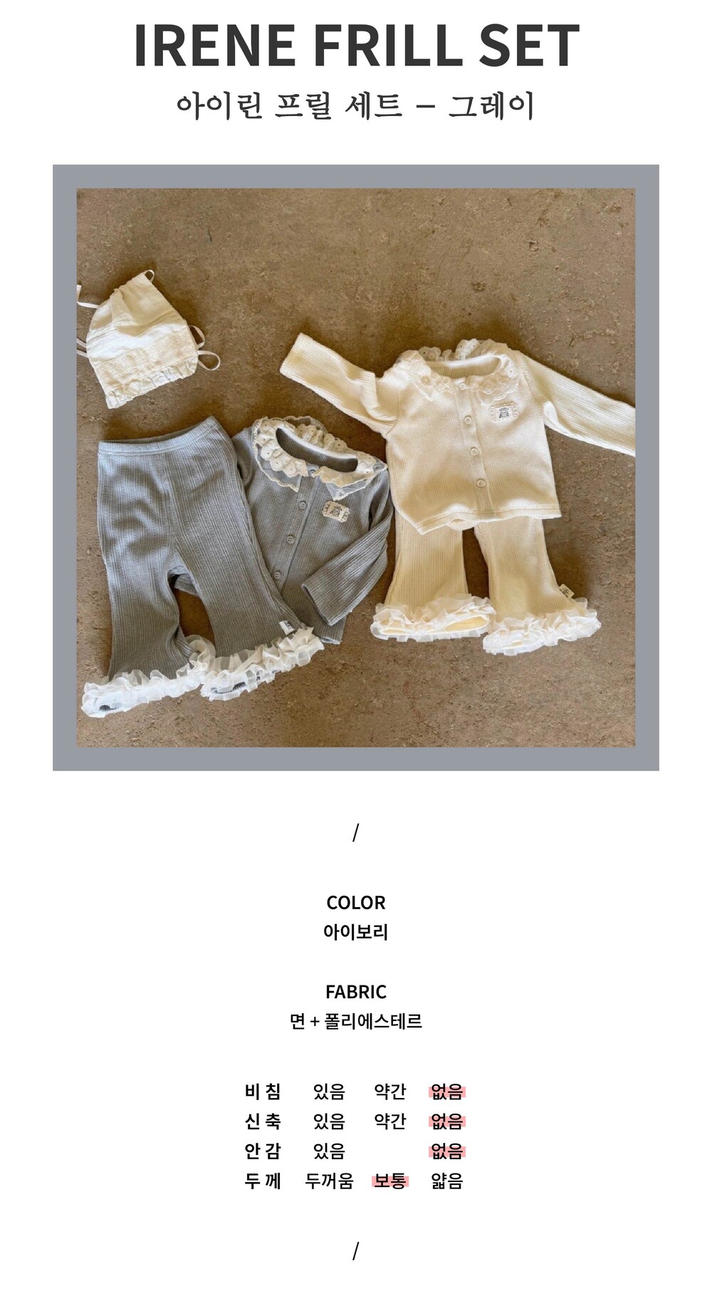 [XS-L] 아이린 프릴 세트 - 그레이