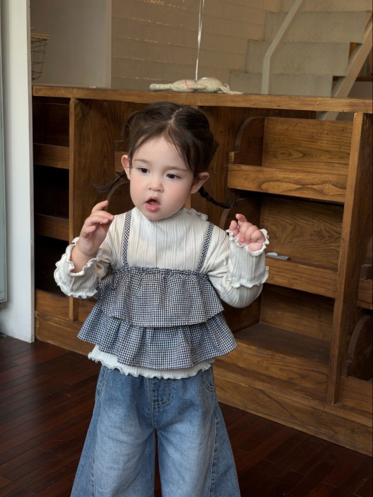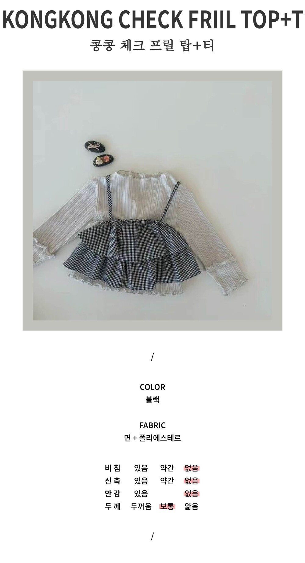 [XS-L] 콩콩 체크 프릴 탑&티