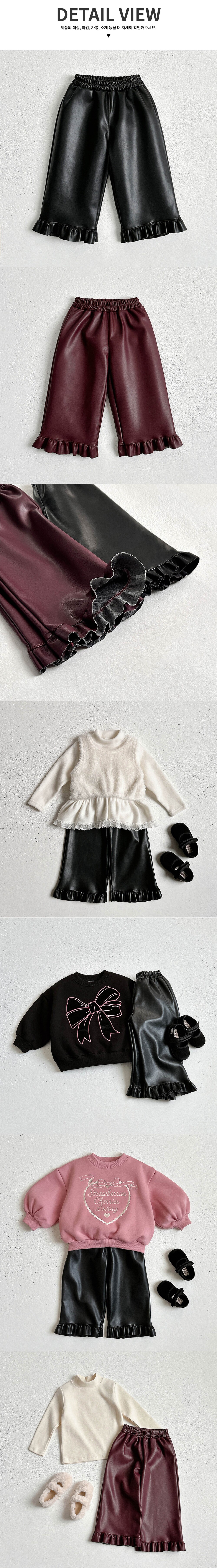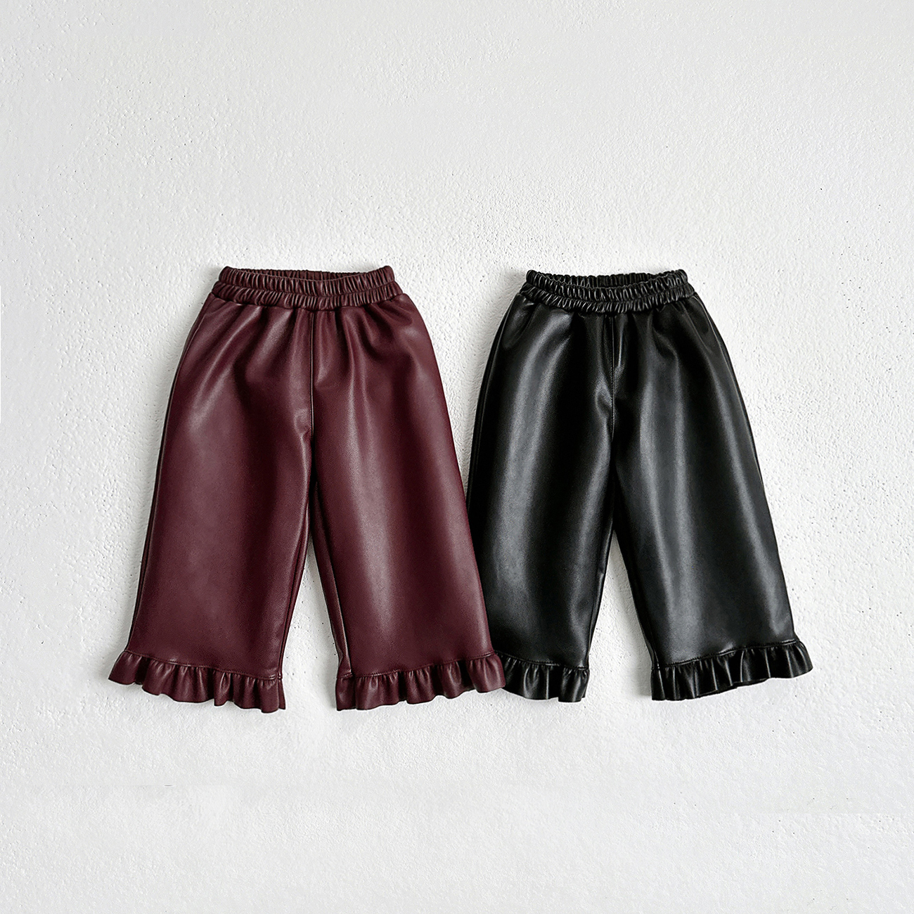 기모를 덧댄 가죽으로 보온성을 올린 프릴 팬츠입니다.