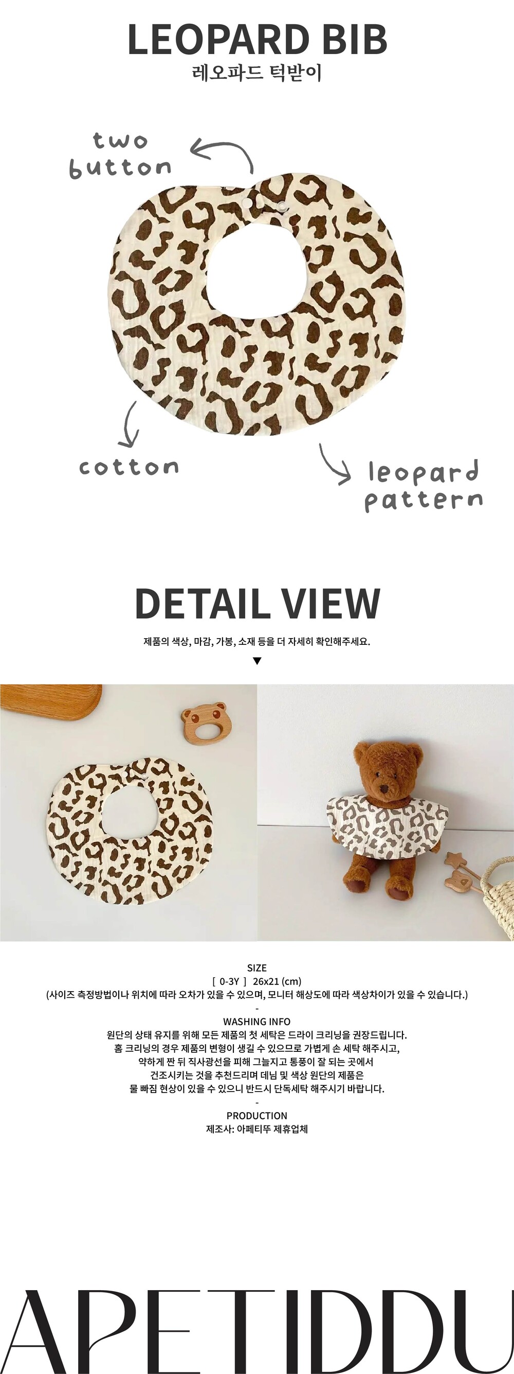 레오파드 패턴이 매력적인 턱받이에요.