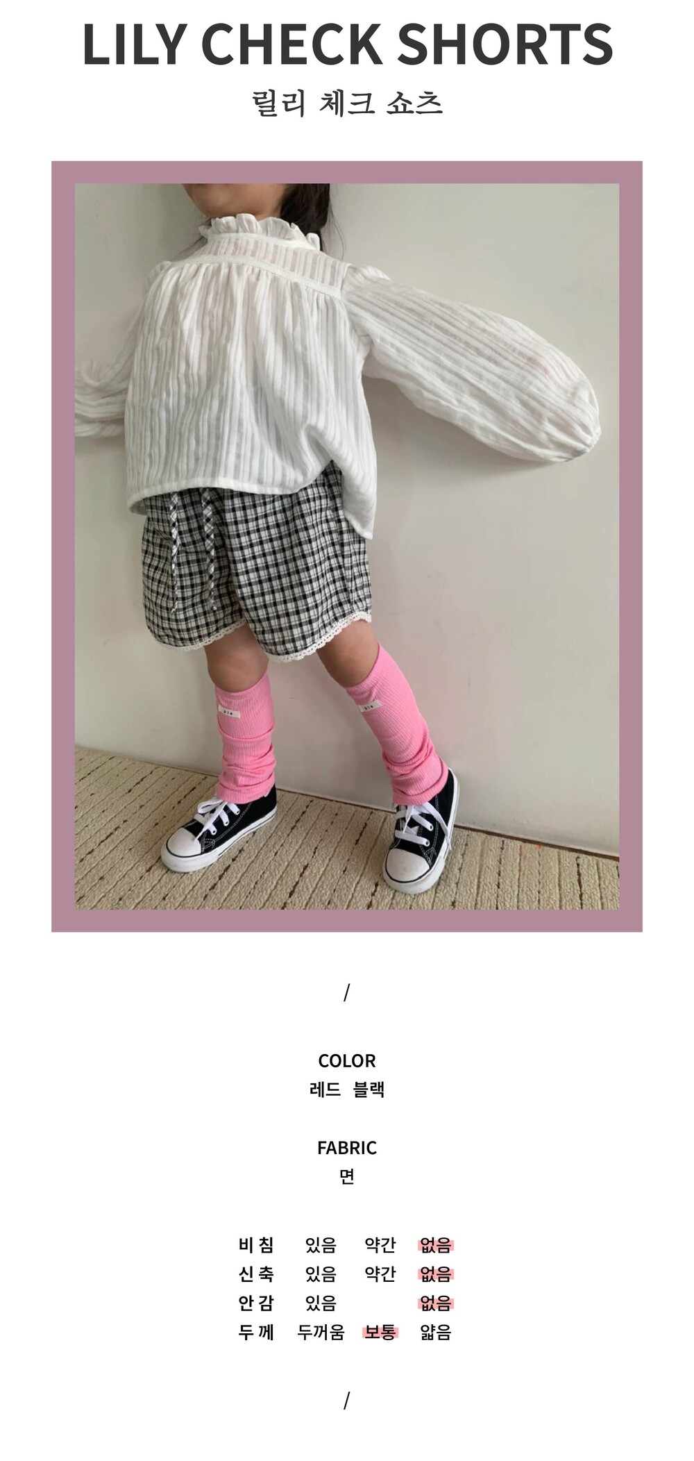 [XS-XL] 릴리 체크 반바지