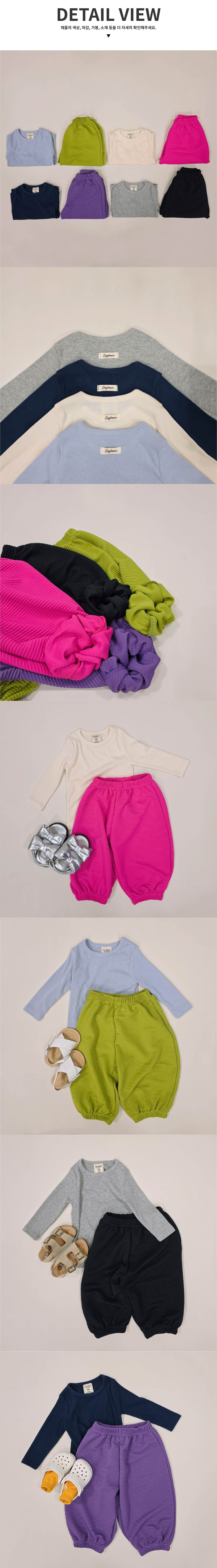 꼬꼬마 아이들에게 특히 잘 어울리는 귀여운 무드의 상하복, 꼬마 배색 세트예요!