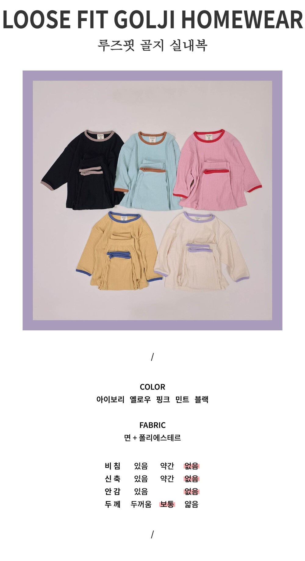 [XS-JM] 루즈핏 골지 실내복