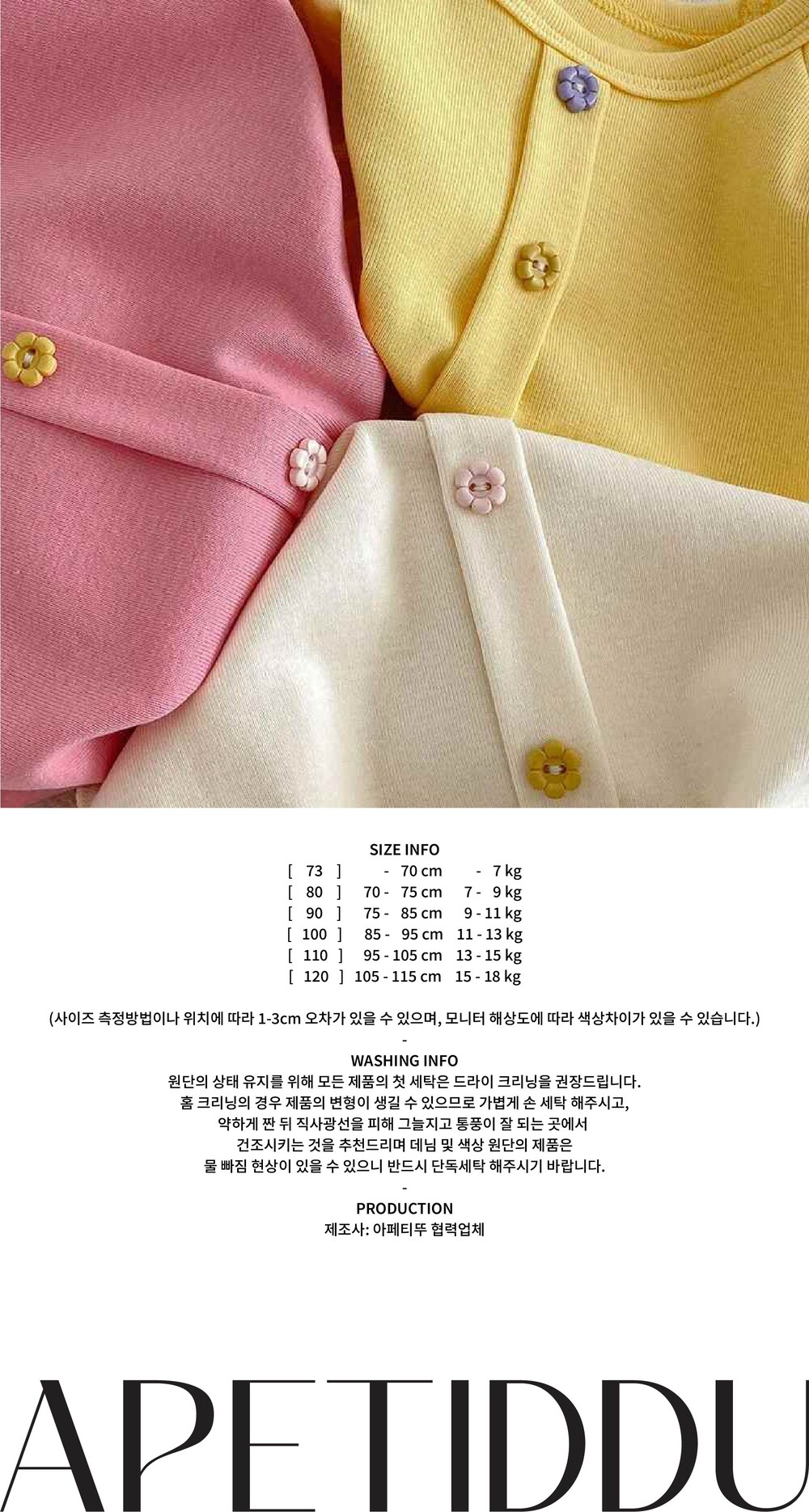 아페티뚜 모델 '다현'은 90 사이즈를 착용했습니다.
