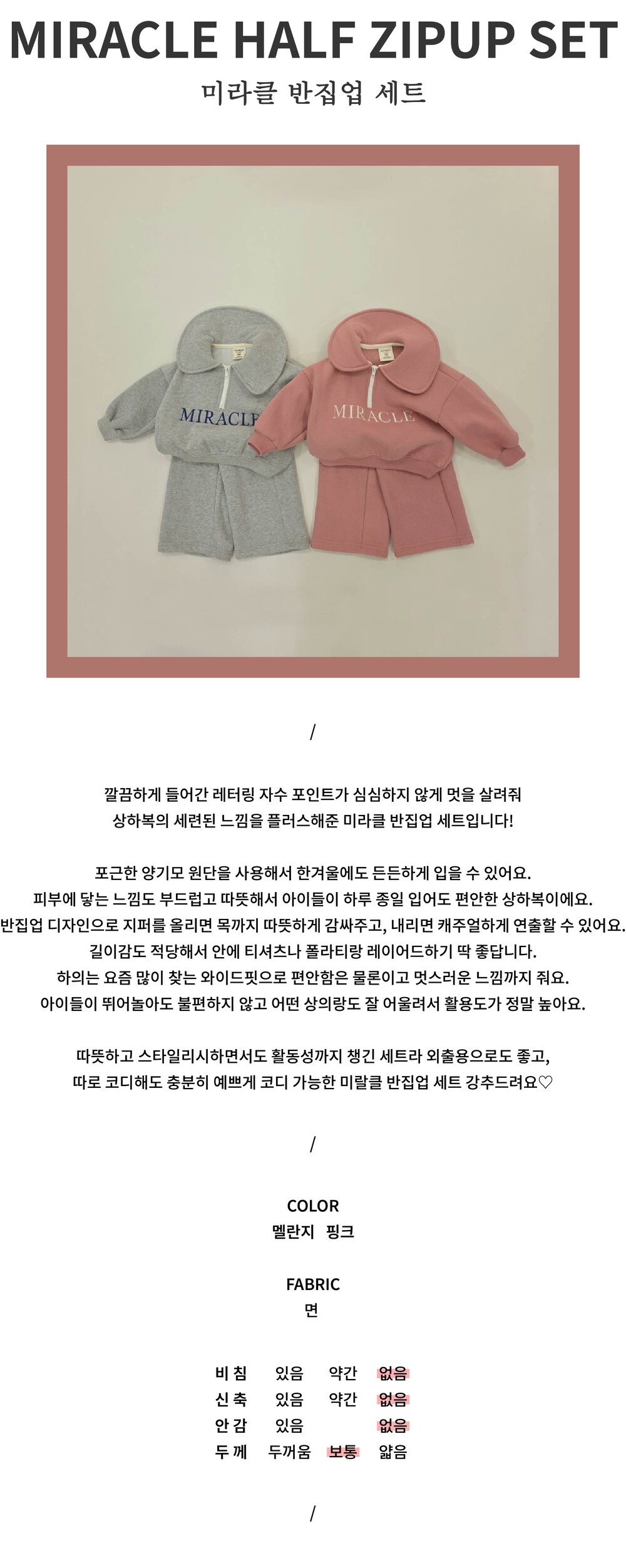 상하복의 세련된 느낌을 플러스해준 미라클 반집업 세트입니다!