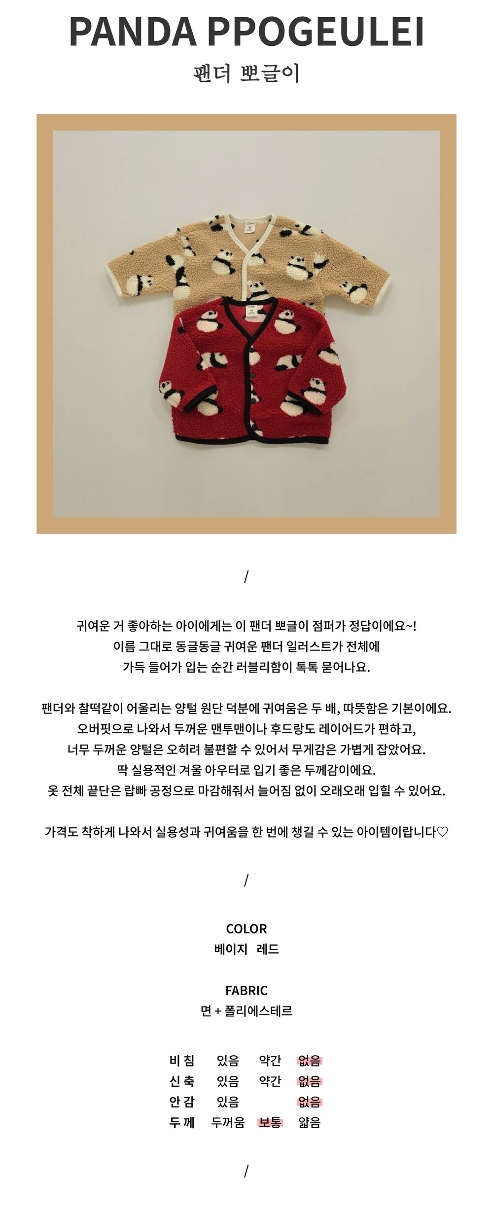 귀여운 거 좋아하는 아이에게는 이 팬더 뽀글이 점퍼가 정답이에요~!