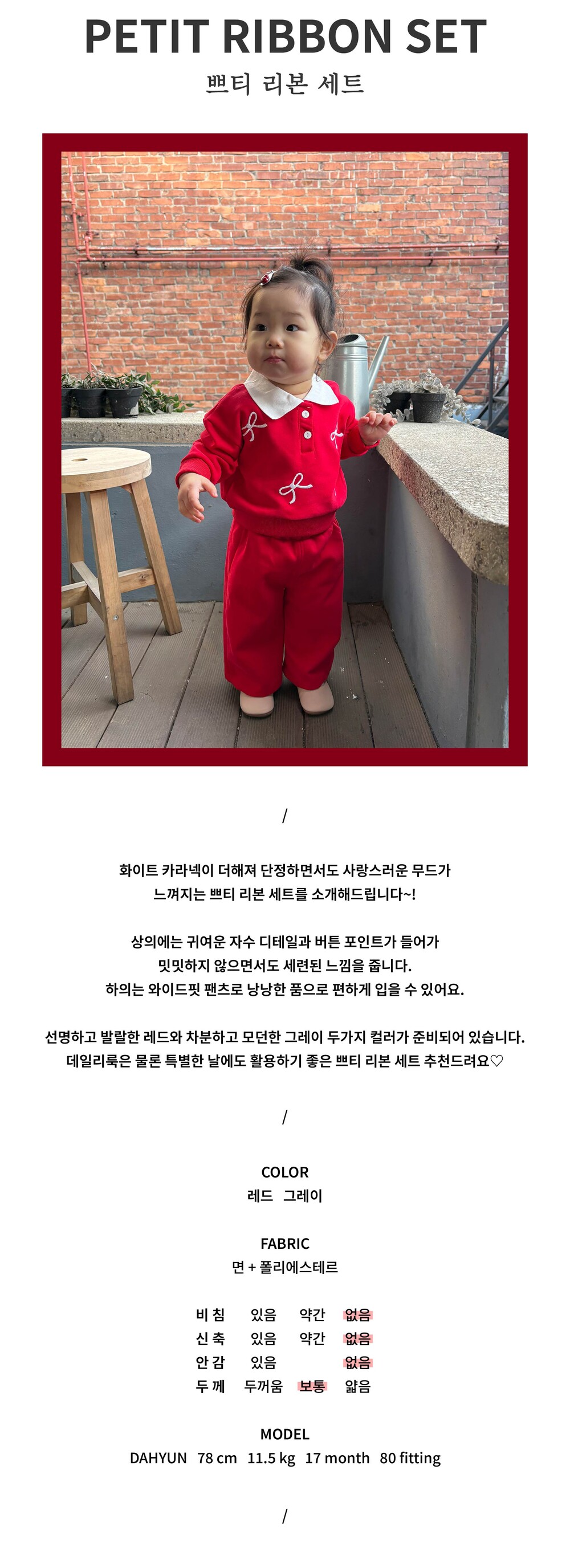 아페티뚜 모델 '다현'은 80 사이즈를 착용했습니다.