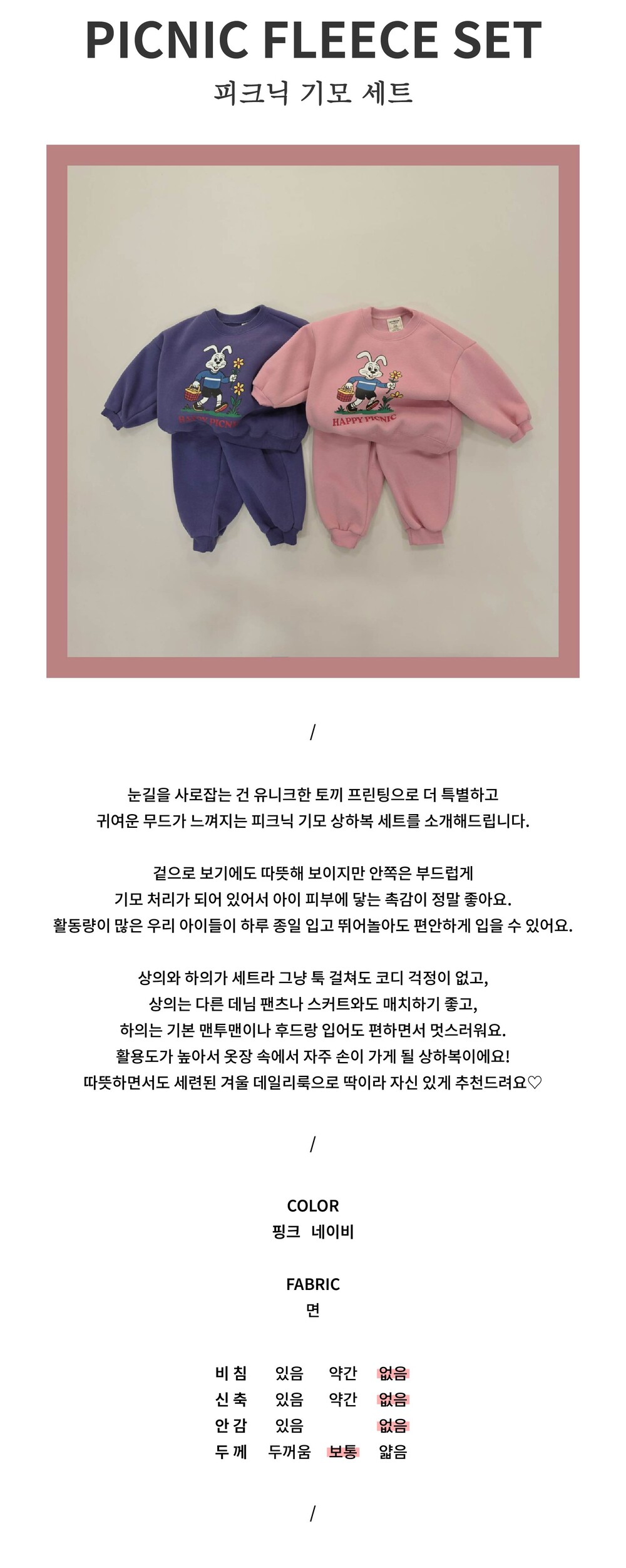 귀여운 무드가 느껴지는 피크닉 기모 상하복 세트를 소개해드립니다.