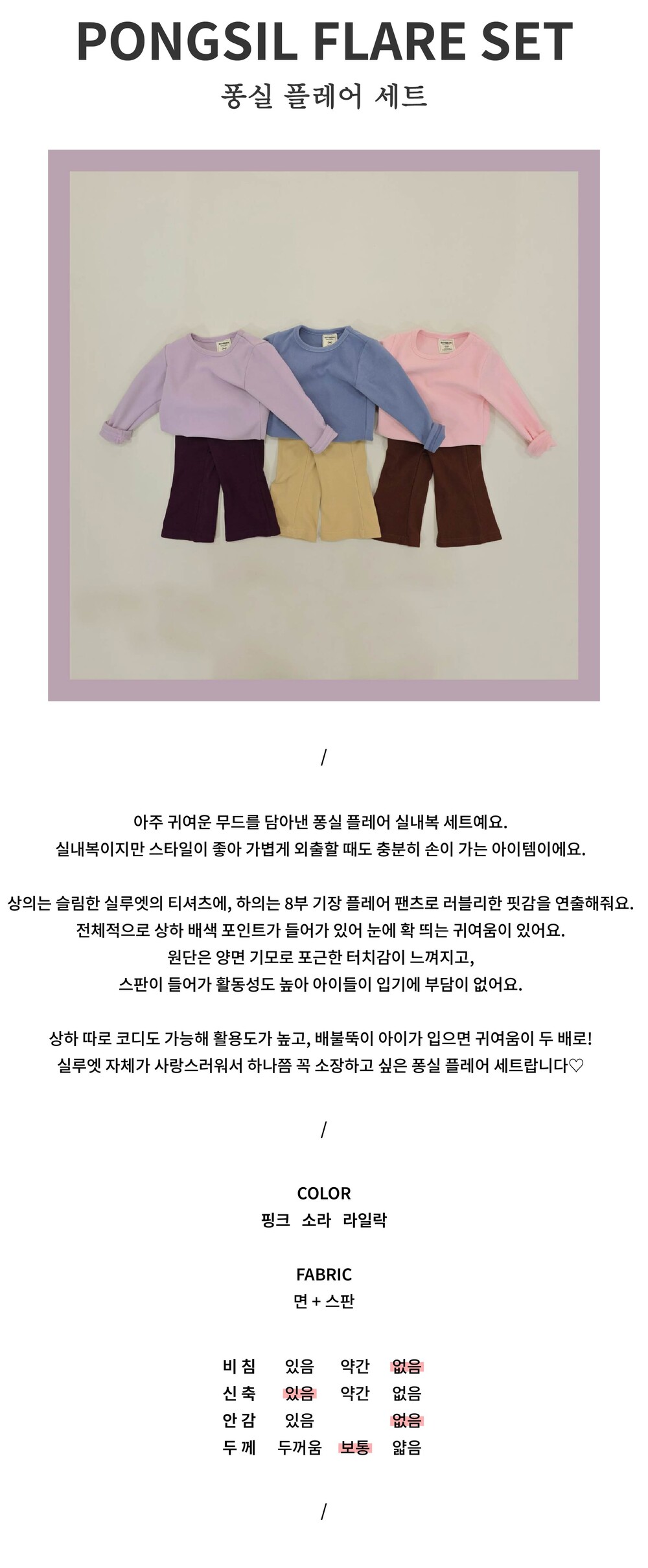 아주 귀여운 무드를 담아낸 퐁실 플레어 실내복 세트예요.