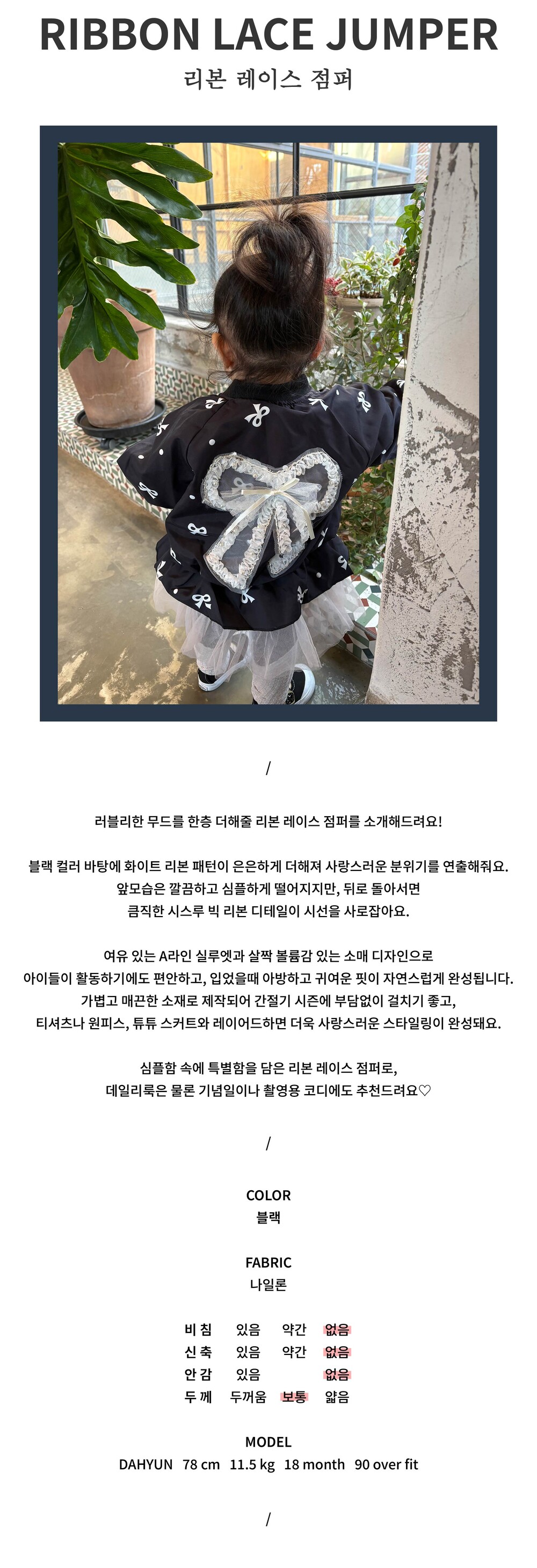 심플함 속에 특별함을 담은 리본 레이스 점퍼로,