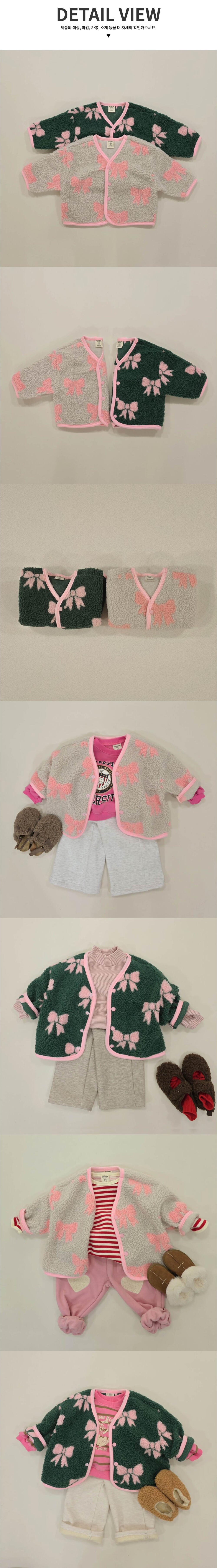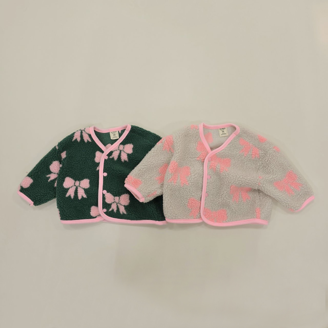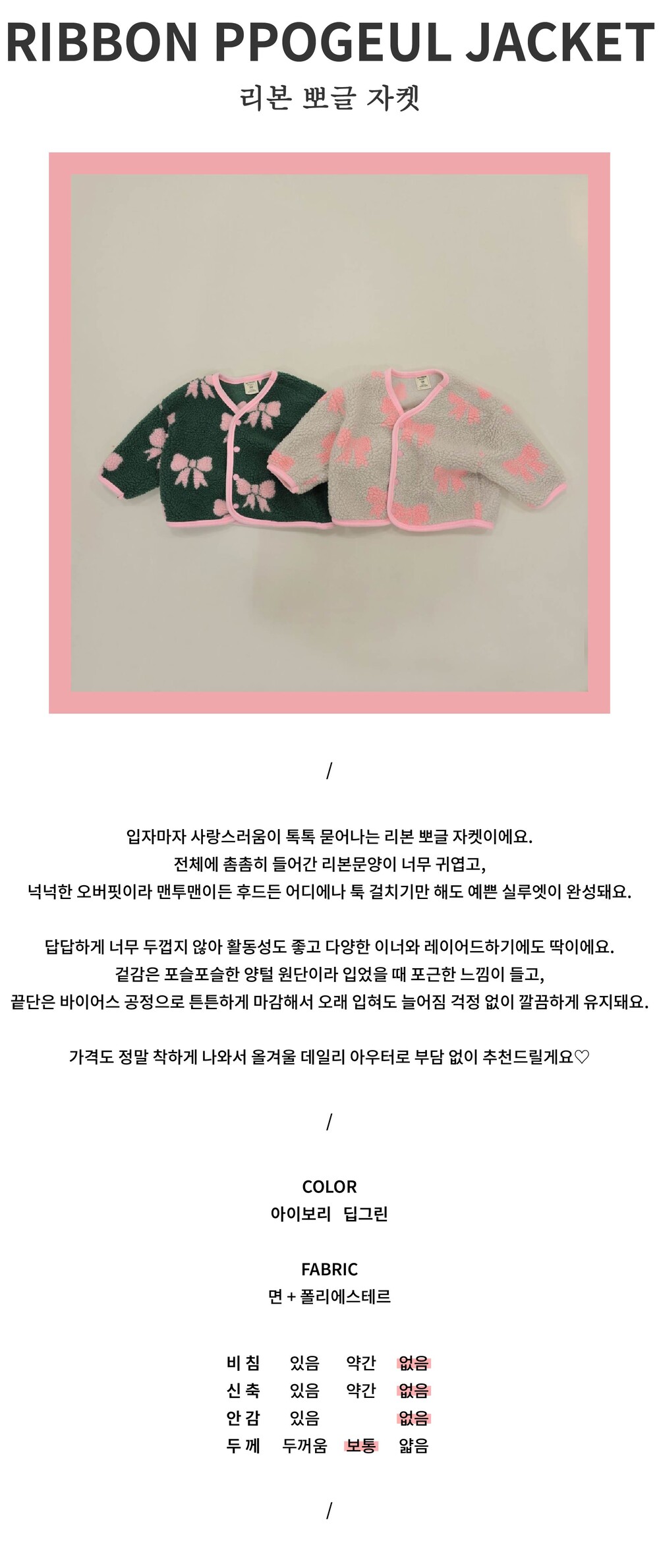 입자마자 사랑스러움이 톡톡 묻어나는 리본 뽀글 자켓이에요.