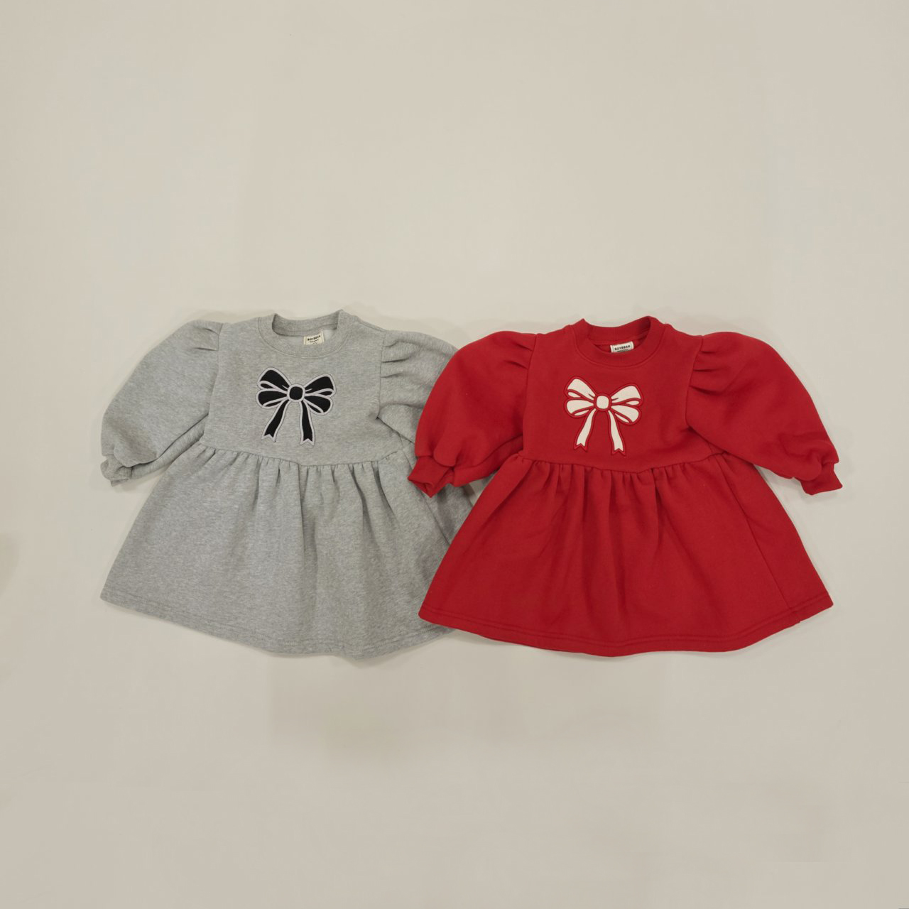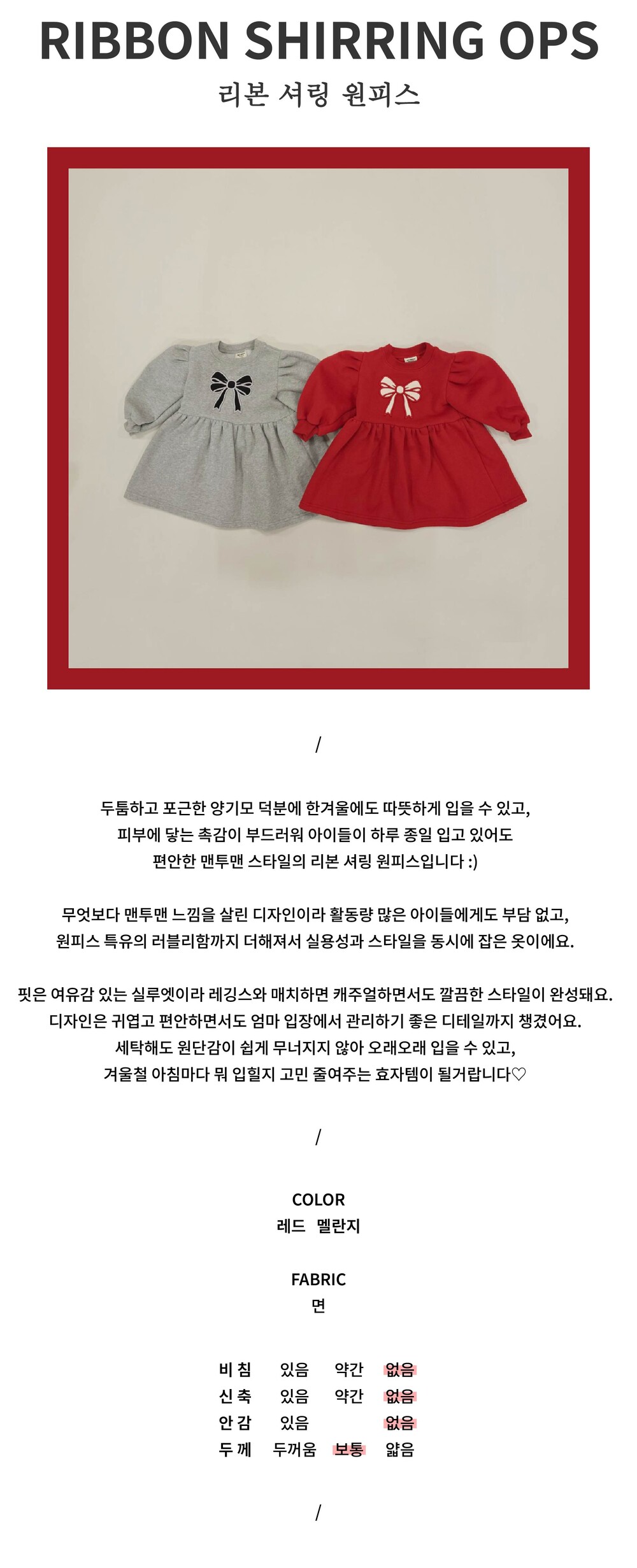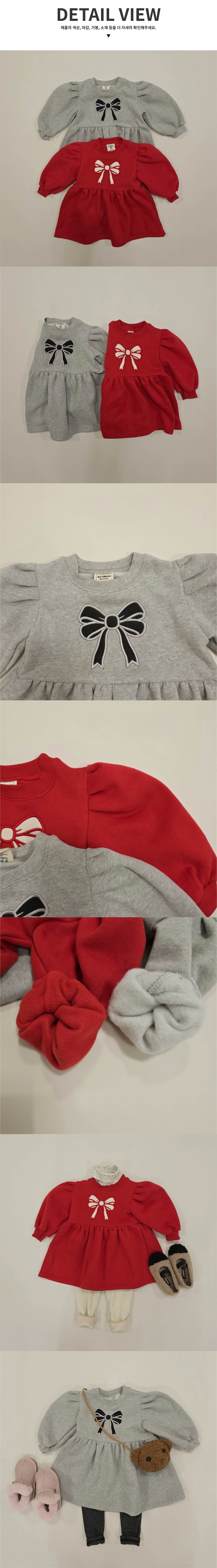 편안한 맨투맨 스타일의 리본 셔링 원피스입니다 :)