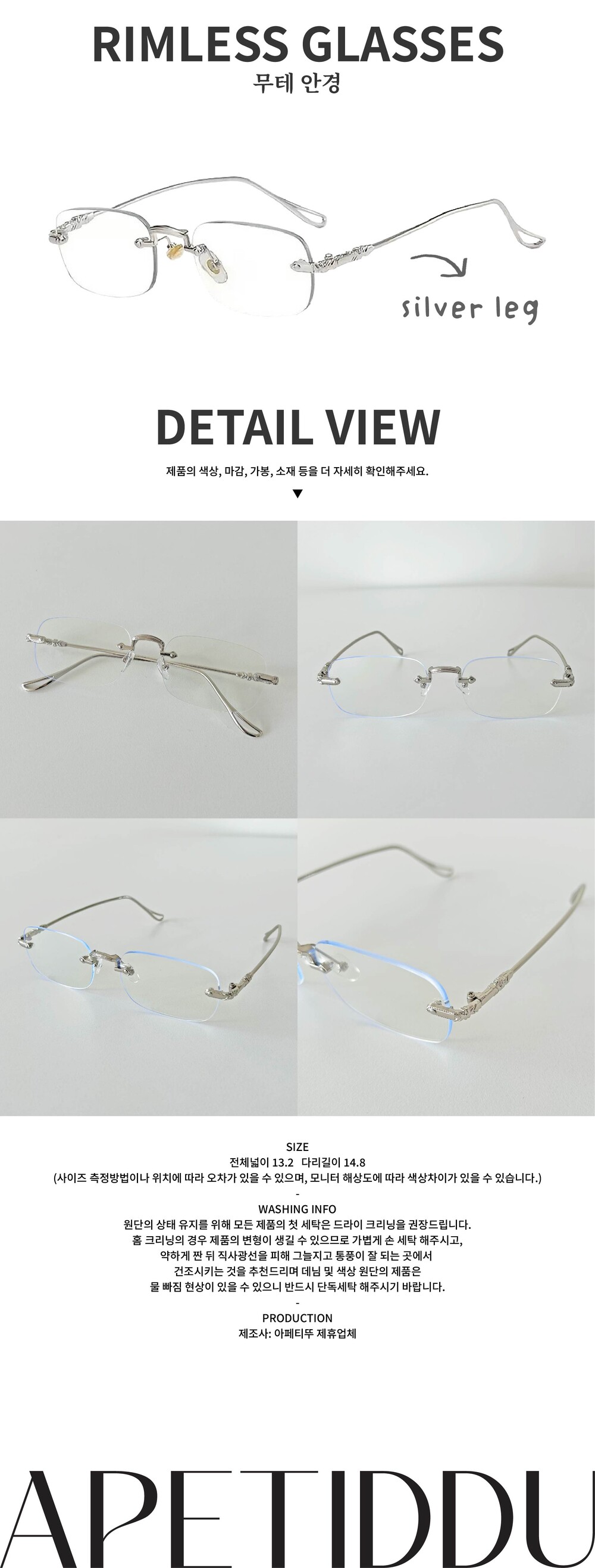 힙한 포인트를 줄 수 있는 무테안경입니다.
